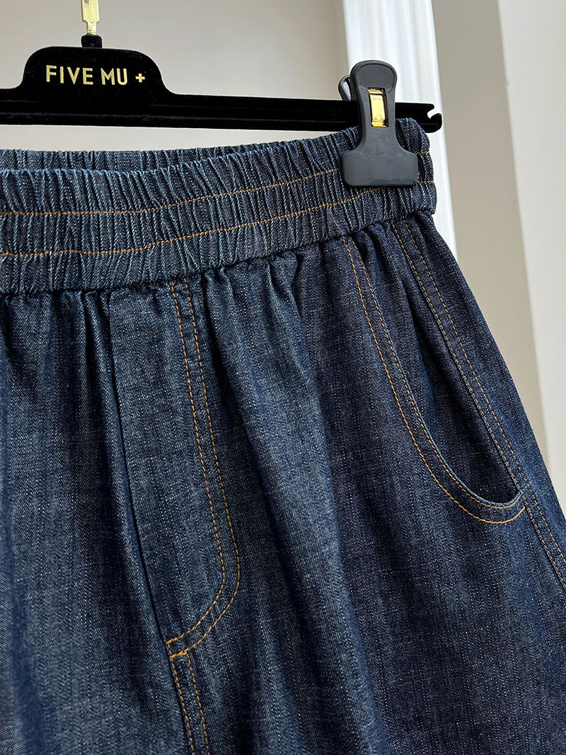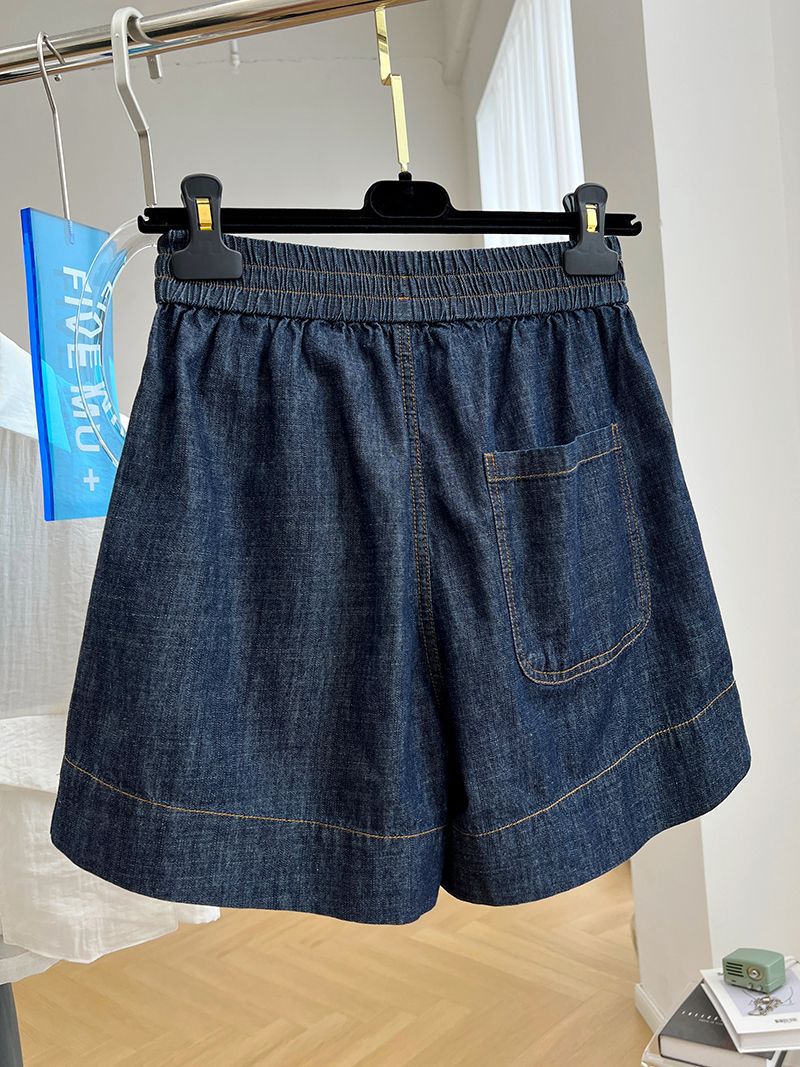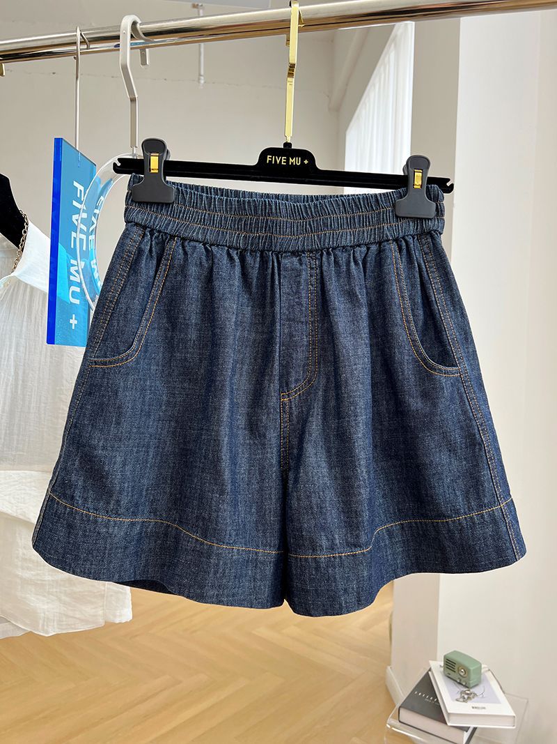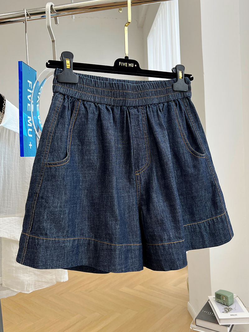 유럽 고급 탄성 허리 캐주얼 데님 반바지 여자의 여름 얇은 느슨한 높은 허리 넓은 다리 바지 핫 팬츠 패션스토어 가기