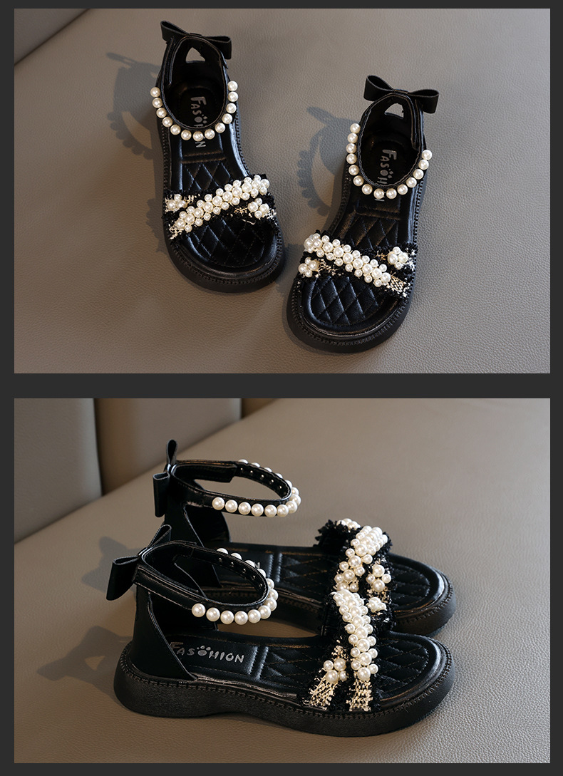 2023 여름 크로스 스트랩 어린이 신발 아기 공주 진주 큰 어린이 소프트 솔 여성 샌들 어린이 신발스토어 가기