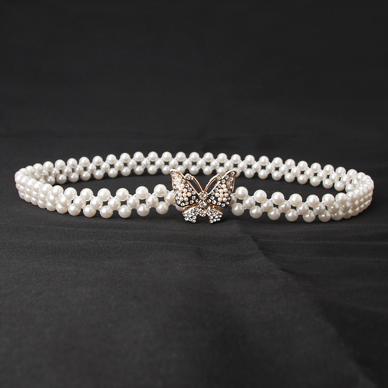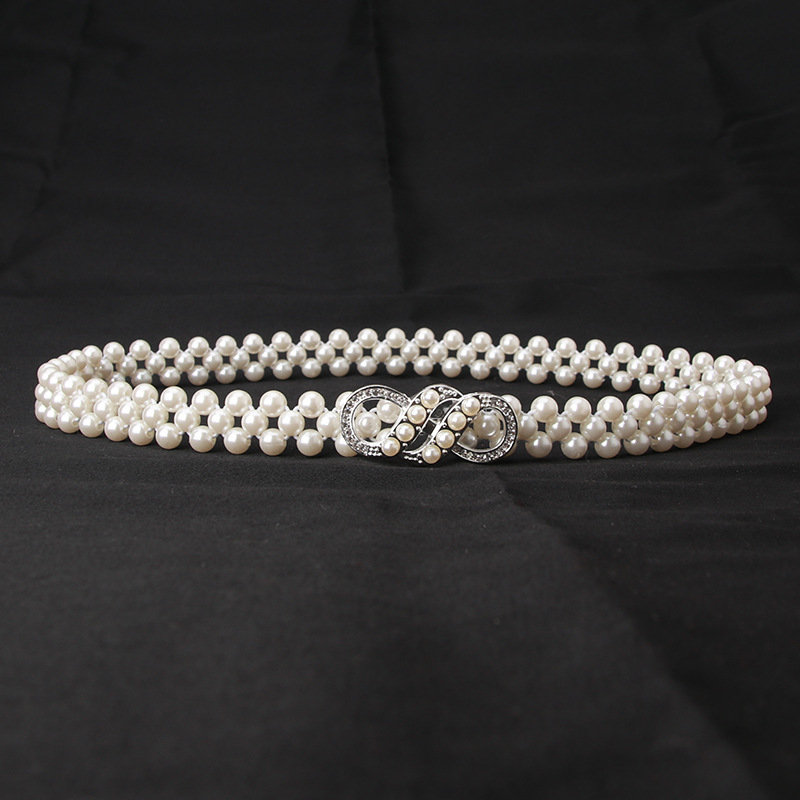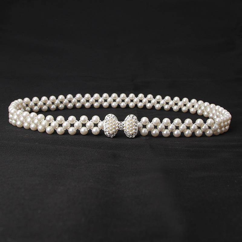 여자의 진주 허리 체인 한국 라인 석 진주 장식 벨트 패션 달콤한 원피스 탄성 벨트 여성 도매
