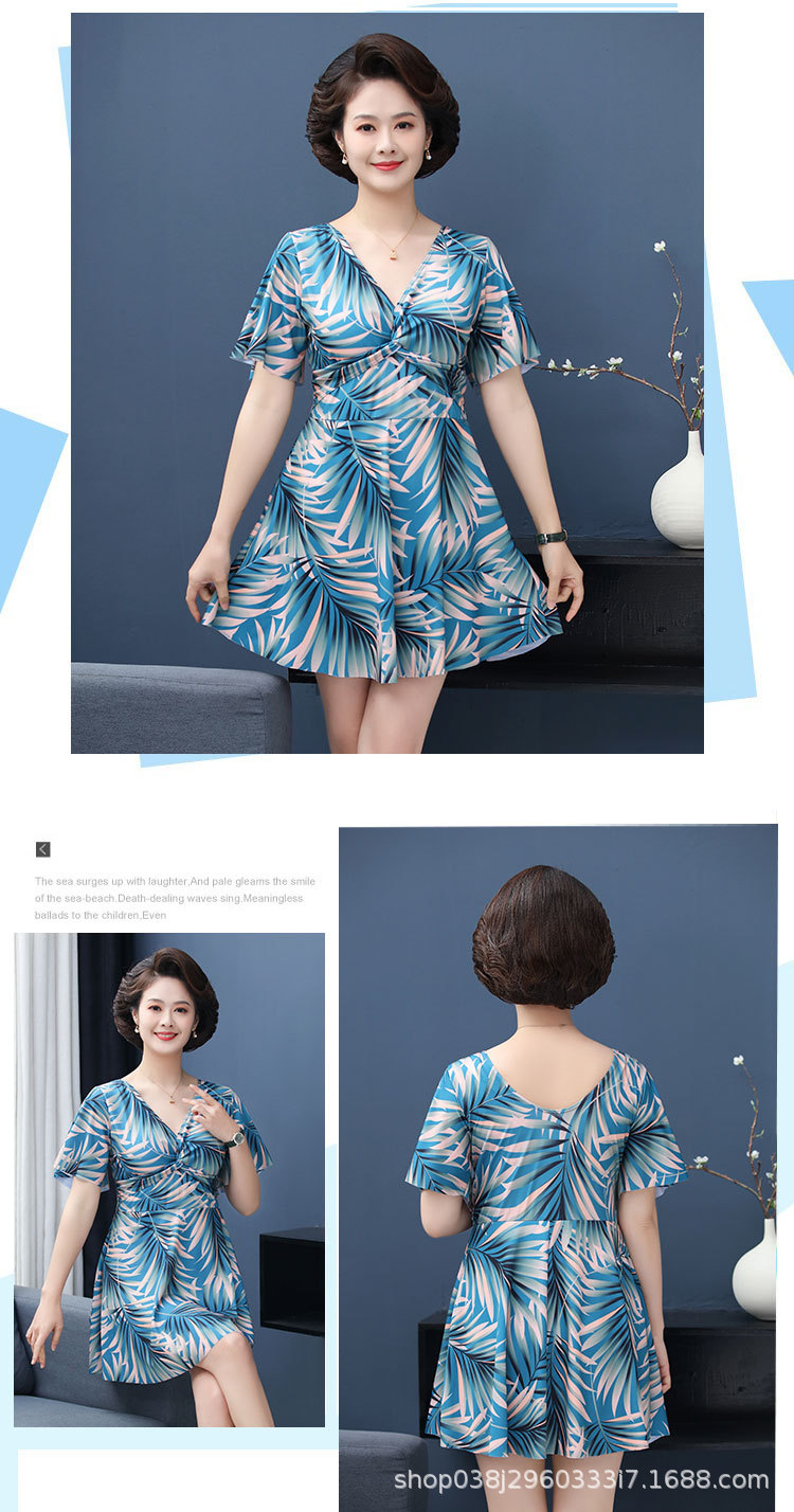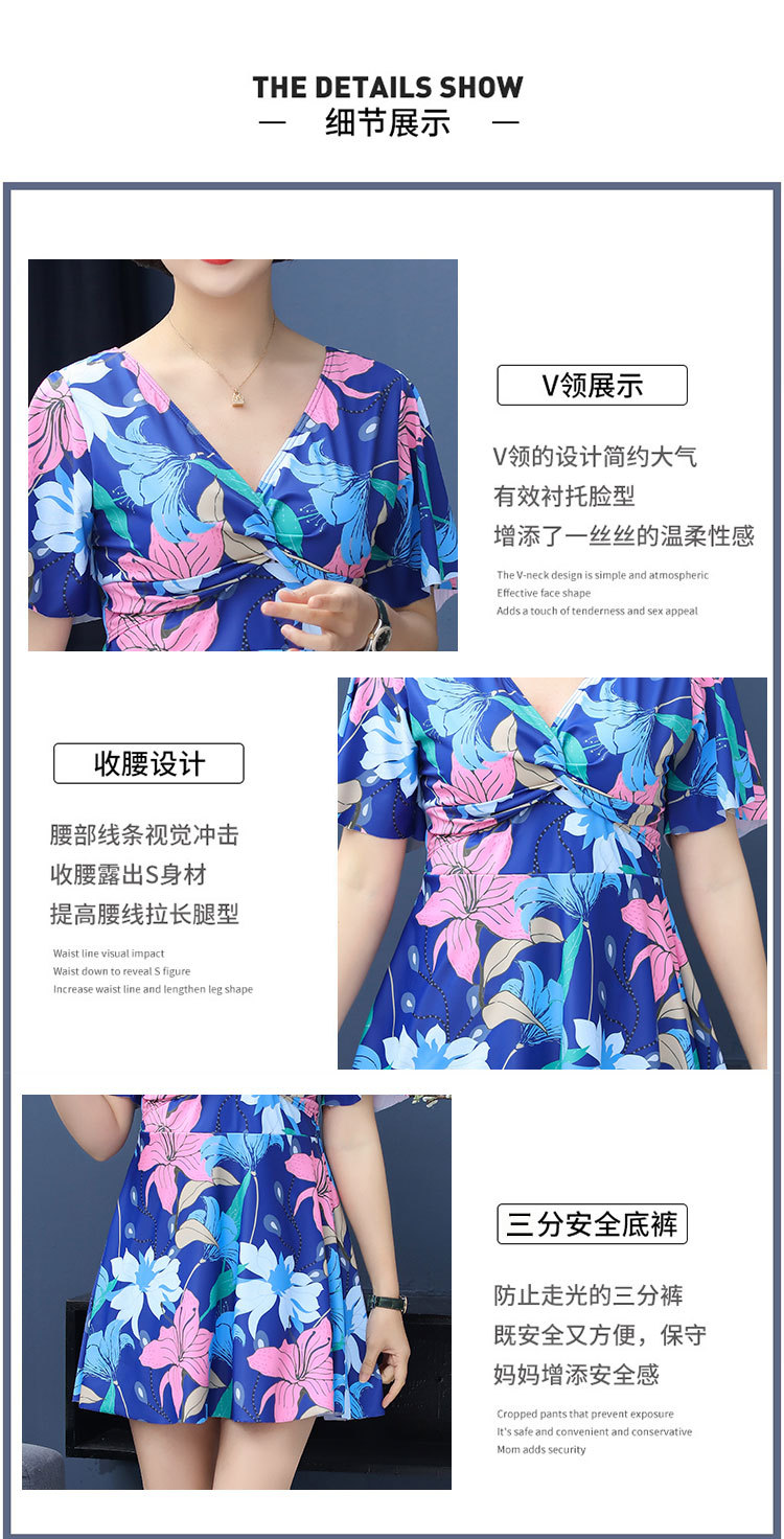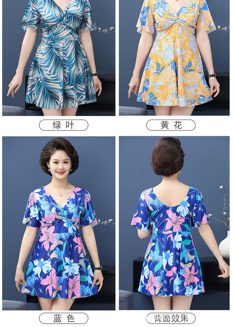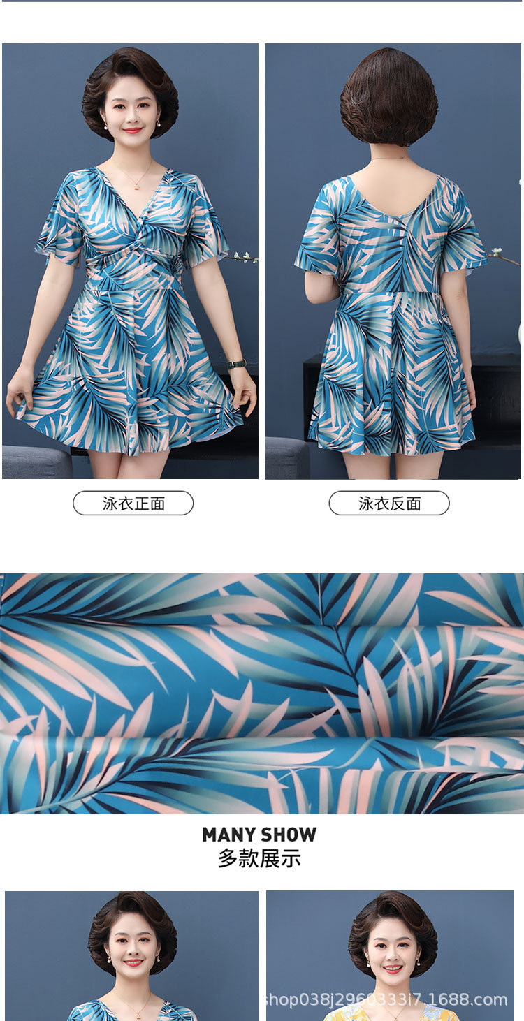 수영복 숙녀 어머니 플러스 지방 플러스 사이즈 중년 분할 보수적 인 인쇄 배꼽 커버 얇은 수영복 제조 업체 도매스토어 가기