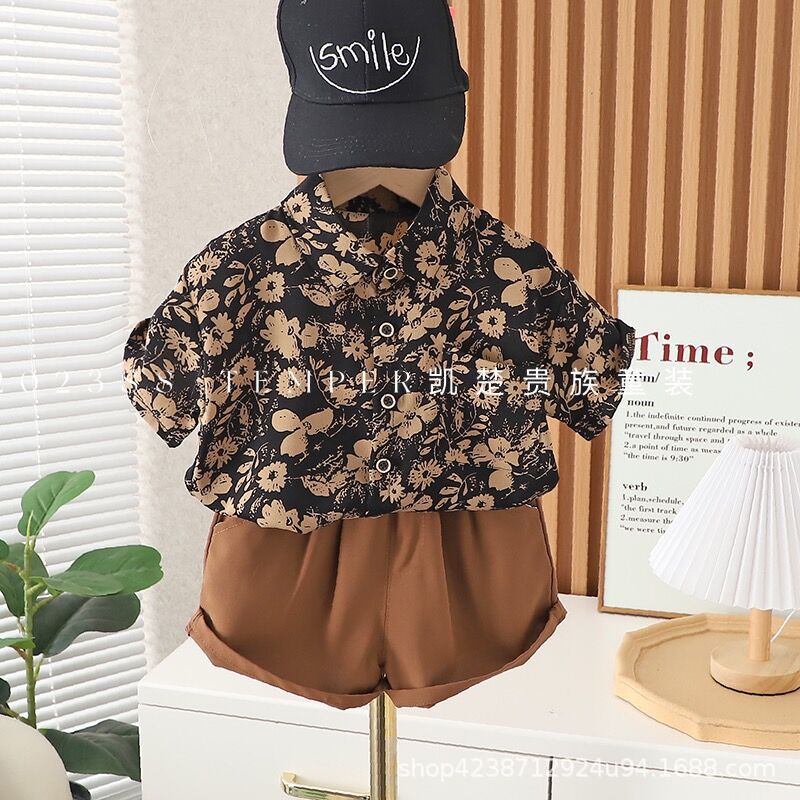 남아 여름 쉬폰 면 셔츠 반팔 2023 통기성 신제품 아동 남아 한국식 여름 반바지 투피스 세트