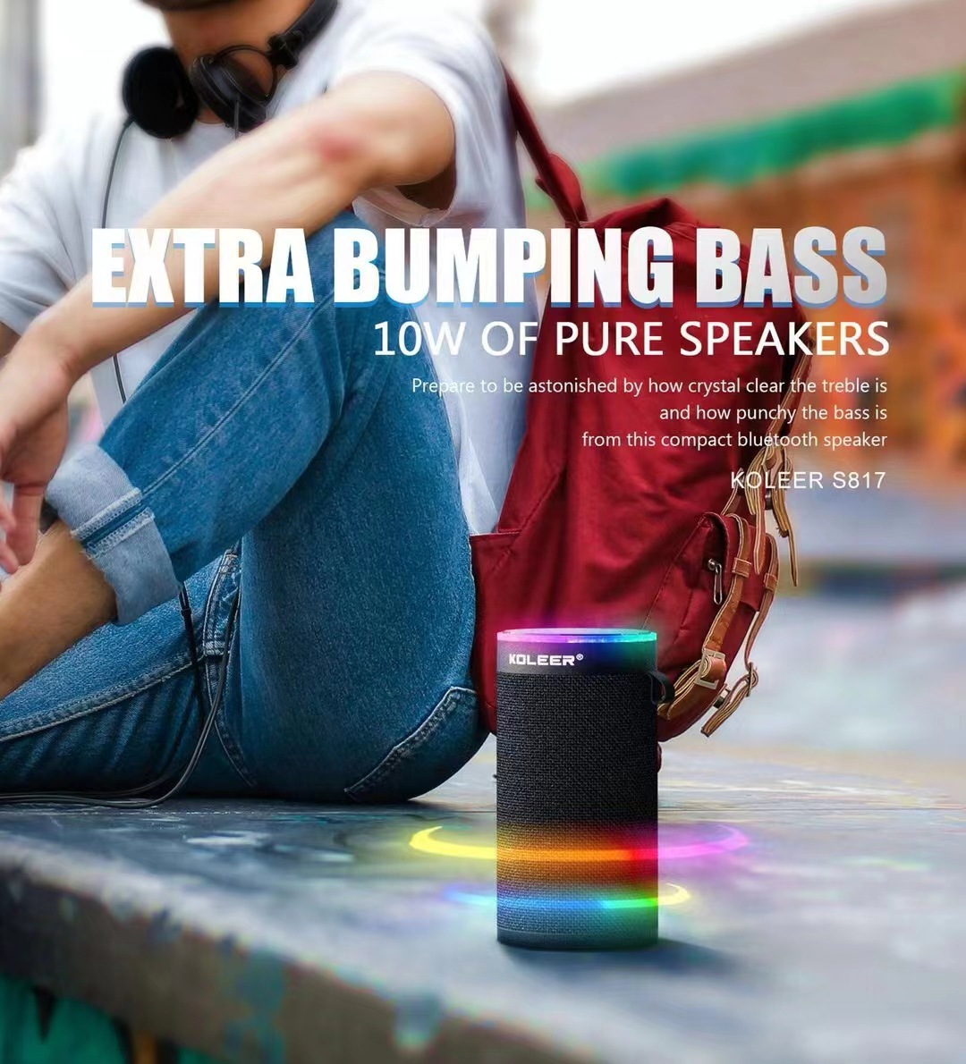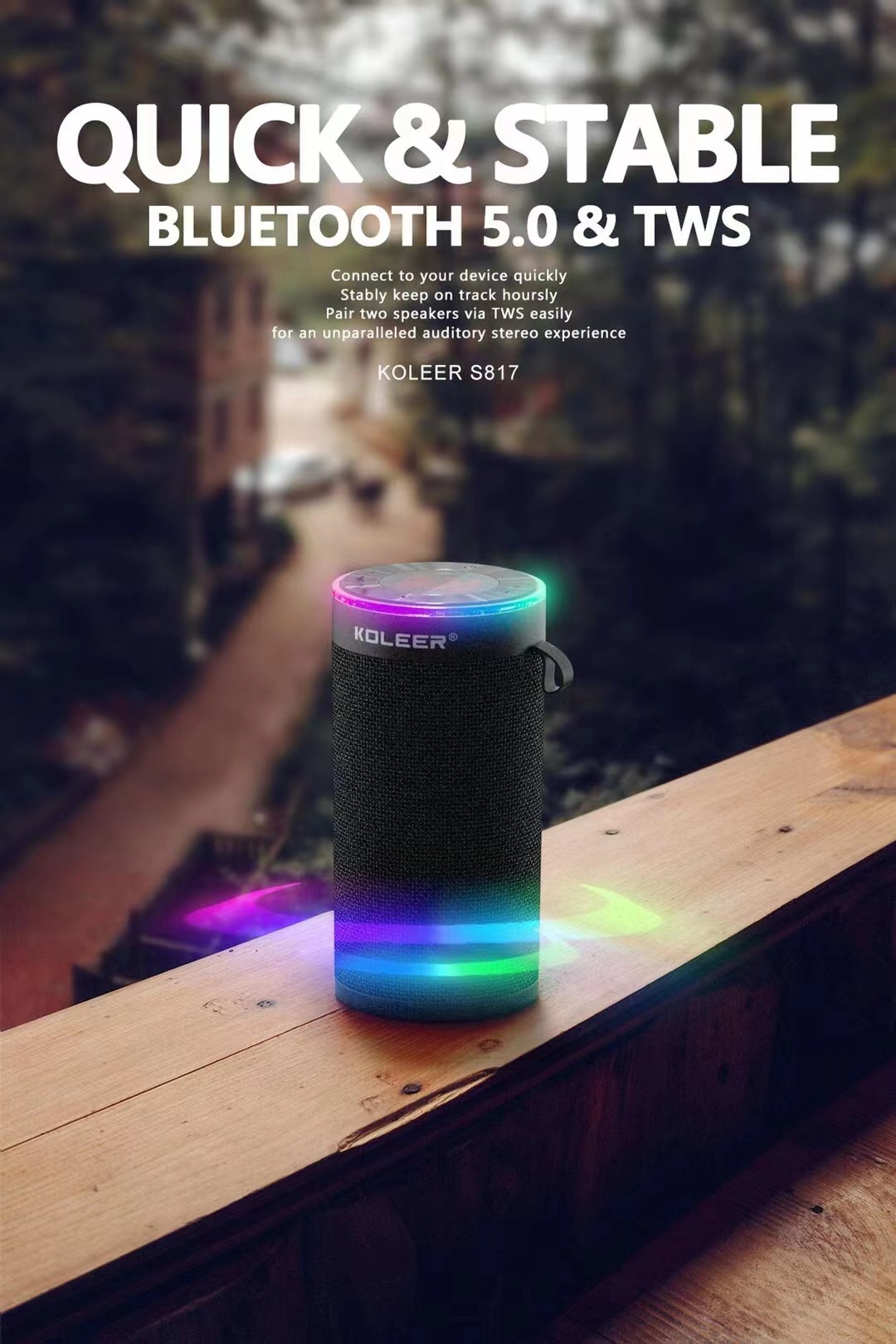 Koleer S817 블루투스 스피커 다채로운 조명 야외 휴대용 승마 카드 서브 우퍼 휴대 전화 미니 스테레오스토어 가기