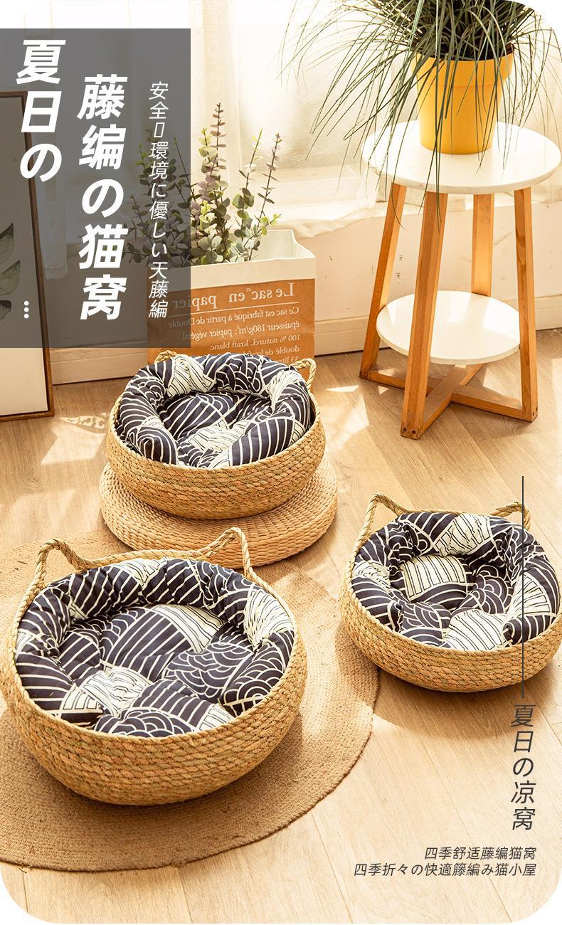 사계절 내내 사용 가능한 국경 등나무 고양이 둥지, 고양이 애완동물을 위한 부들 둥지, 인터넷 연예인 여름 고양이 침대, 고양이 긁는 보드, 개집스토어 가기
