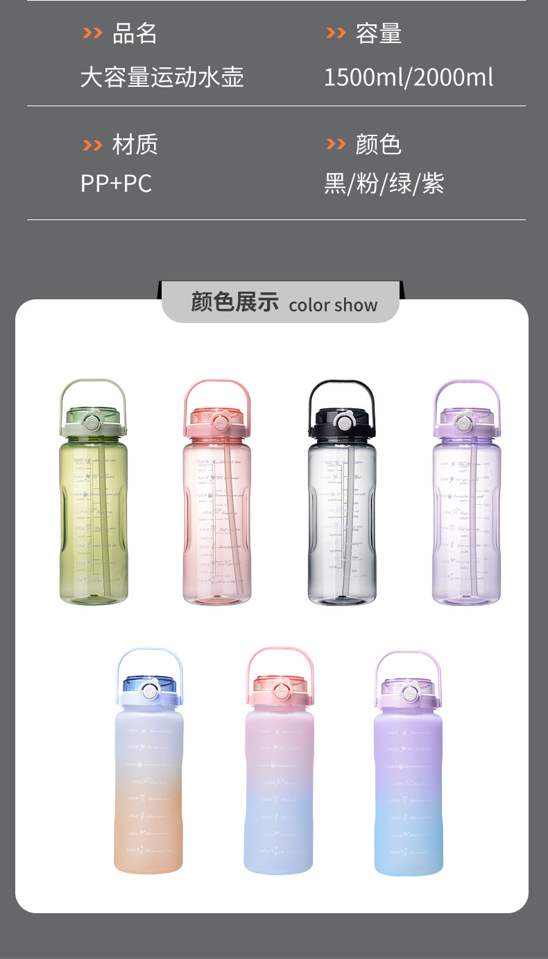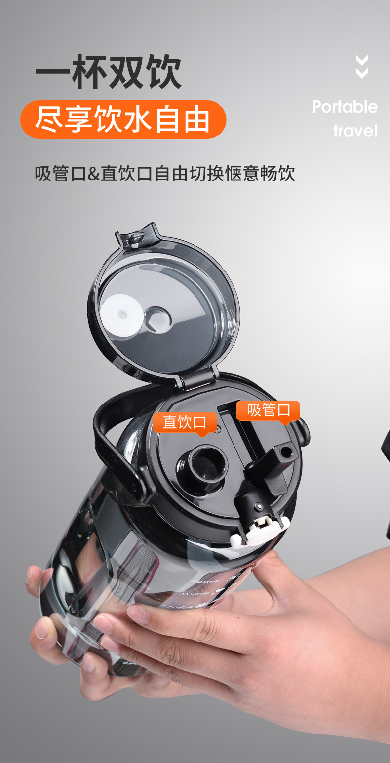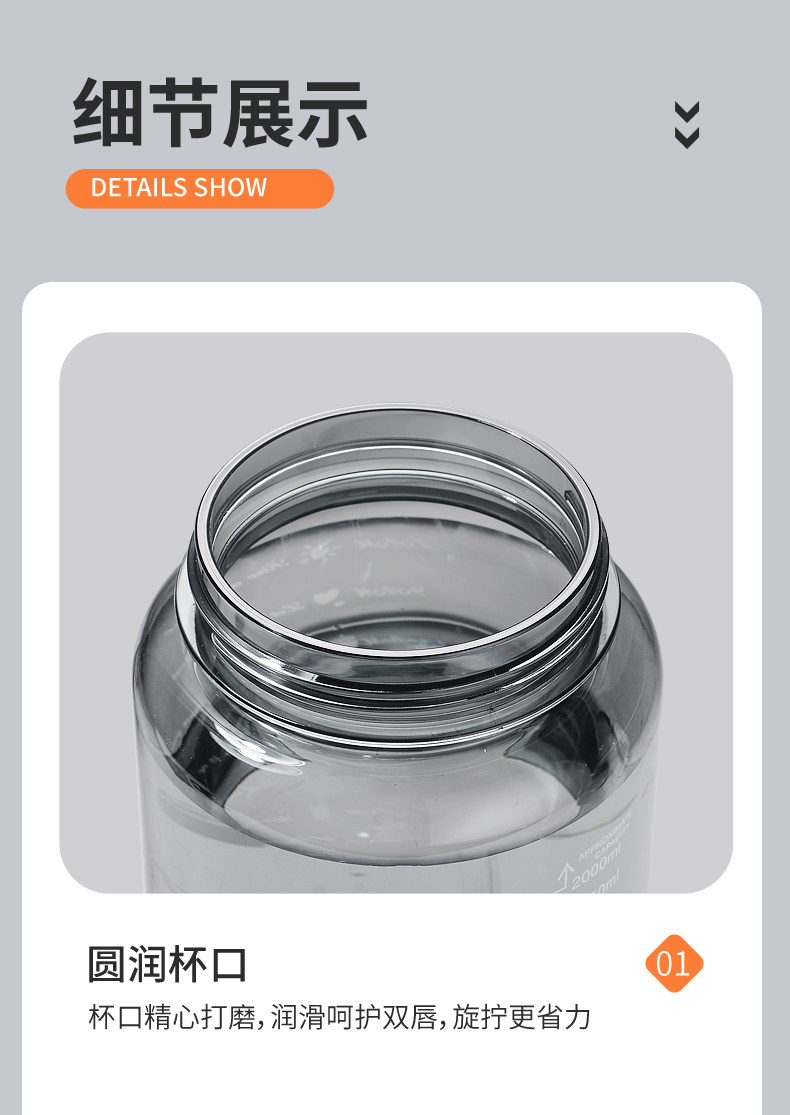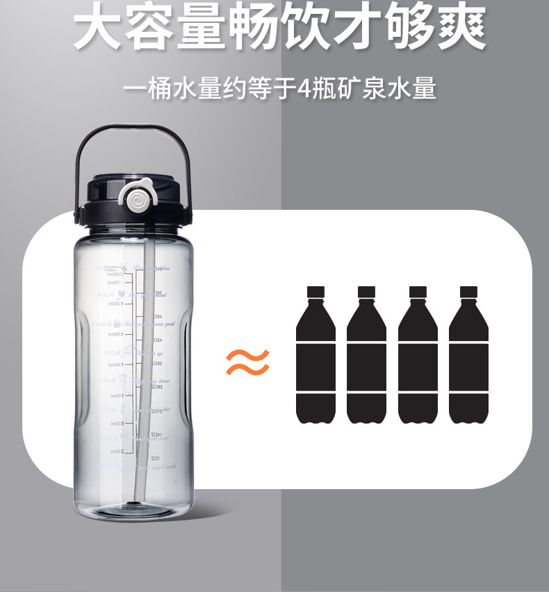 JW超大水杯大容量塑料水壶耐高温运动健身水瓶男夏2000ml太空茶杯