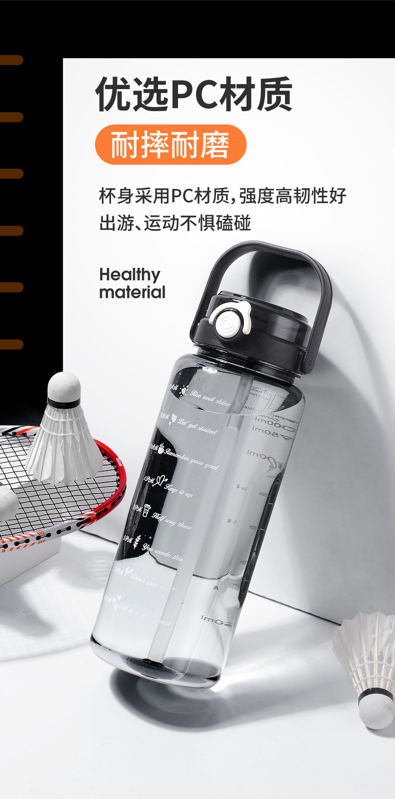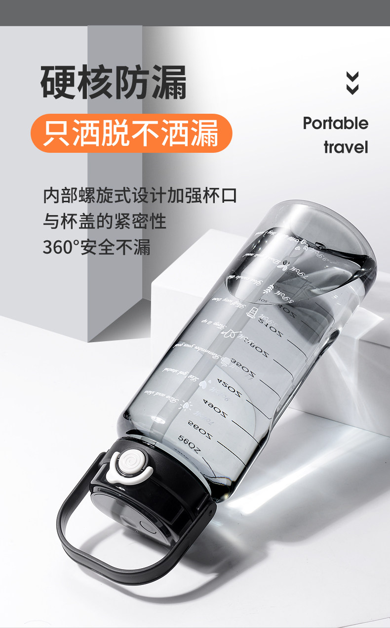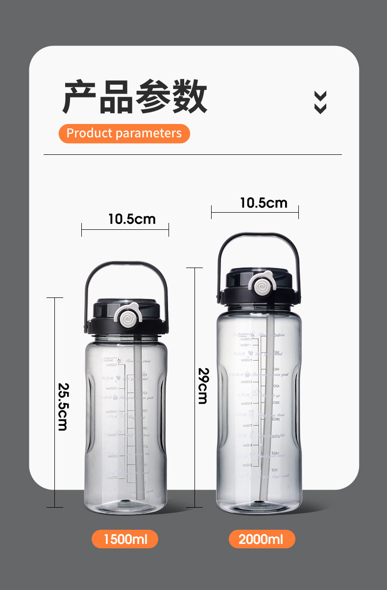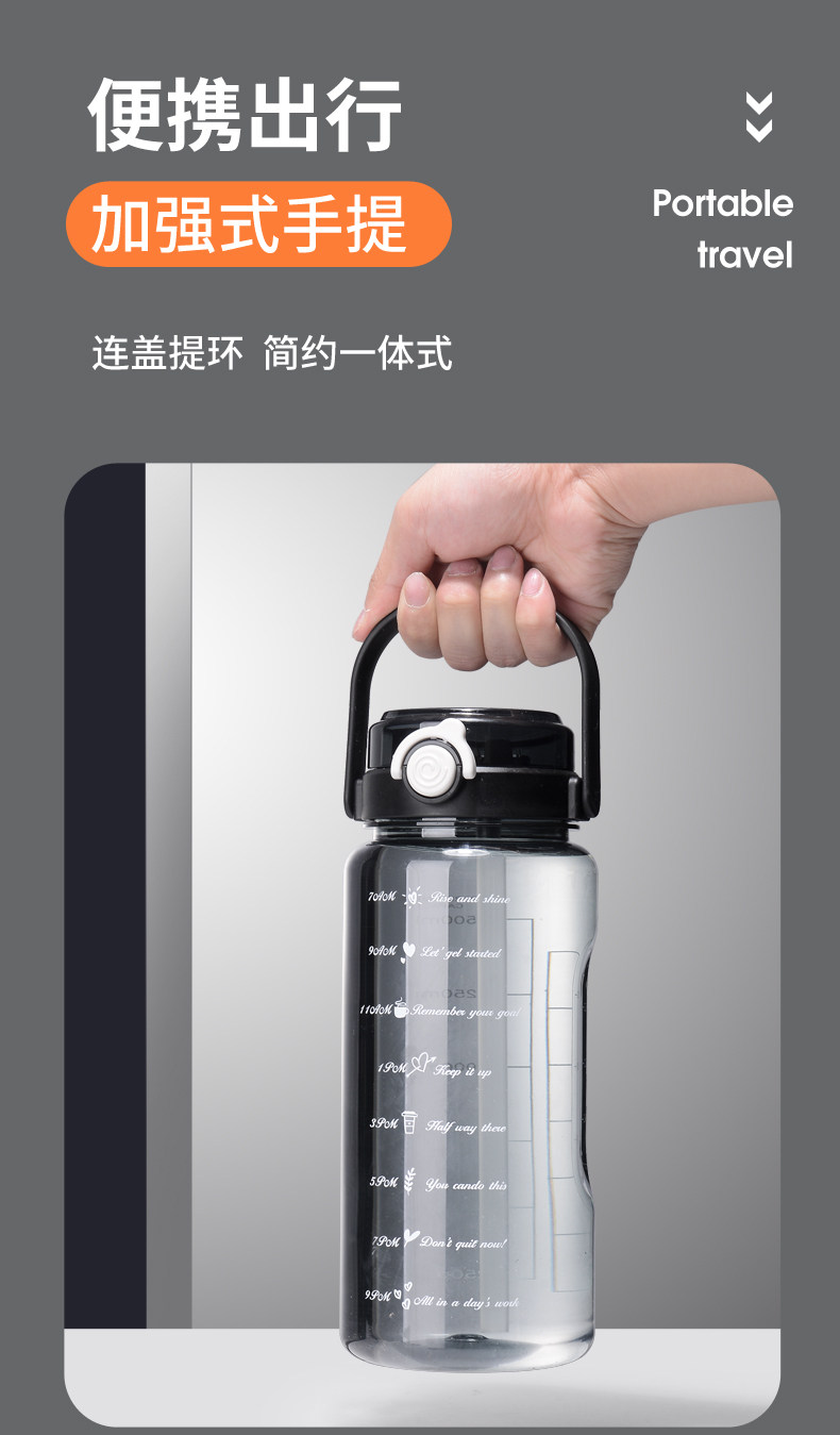 JW超大水杯大容量塑料水壶耐高温运动健身水瓶男夏2000ml太空茶杯
