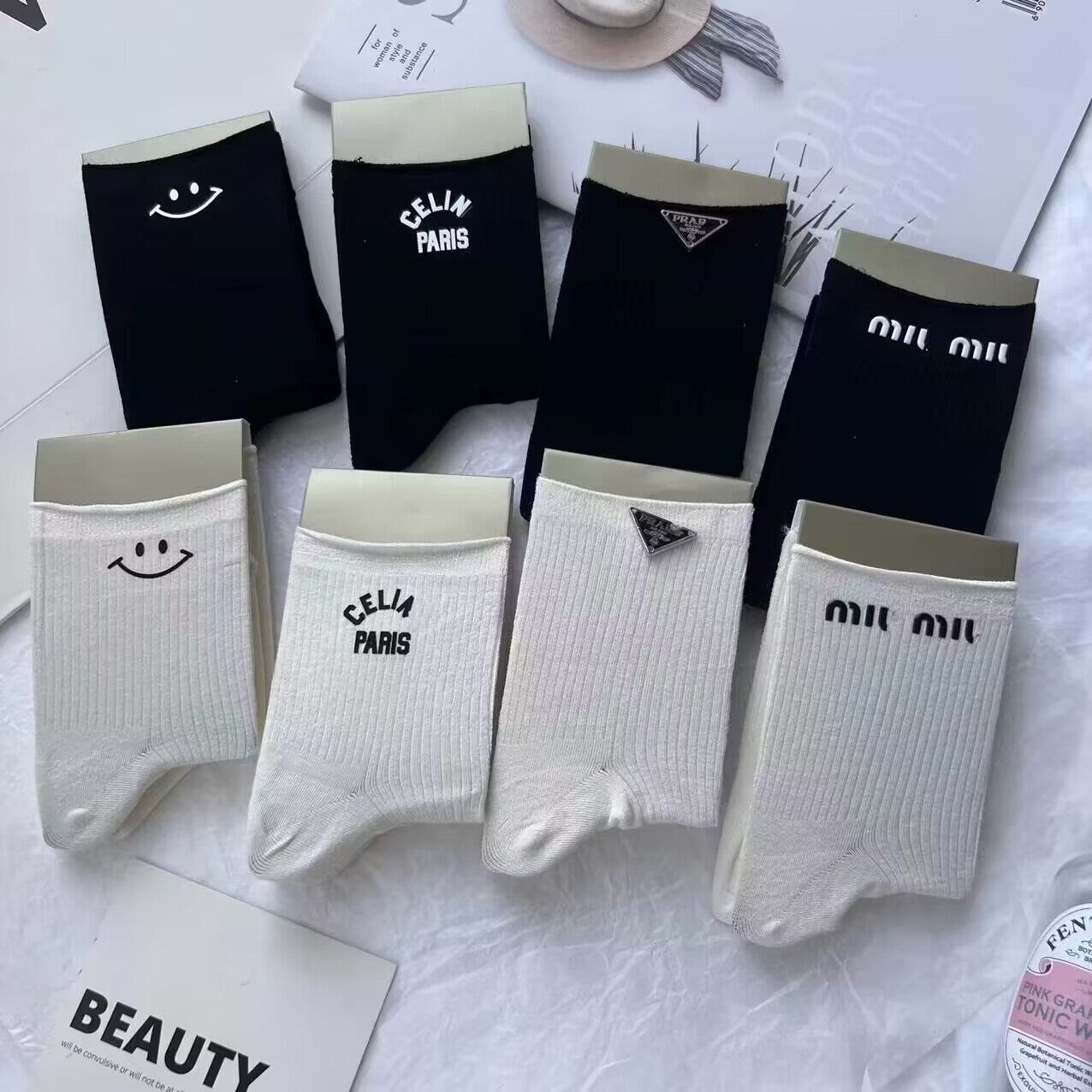 SD1989 슈퍼 소프트 쇼트 튜브 여성 양말 편지 유행 양말 유럽 봄과 여름 얇은 흑백 양말스토어 가기
