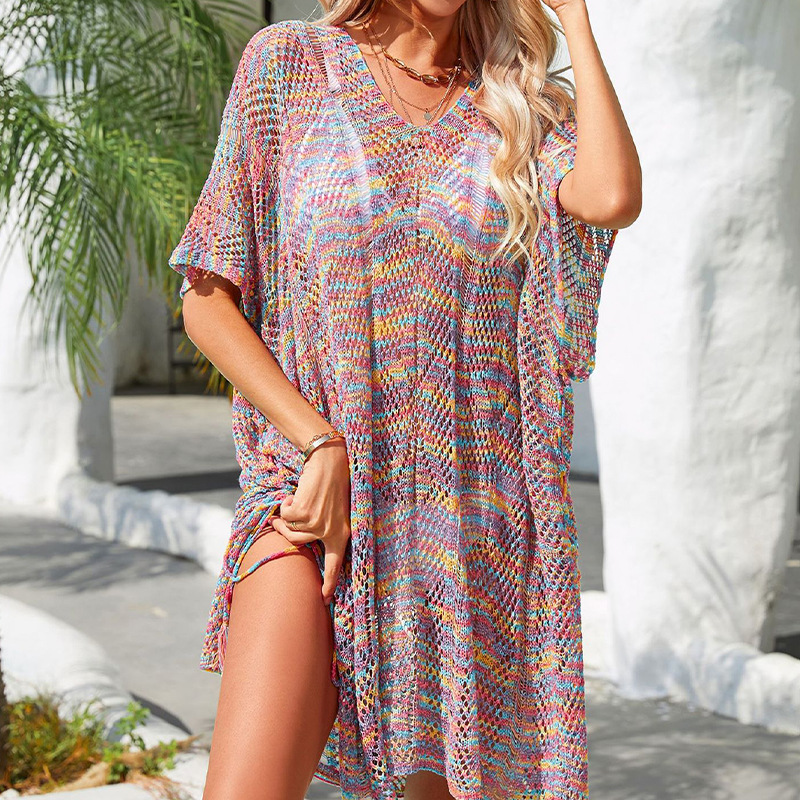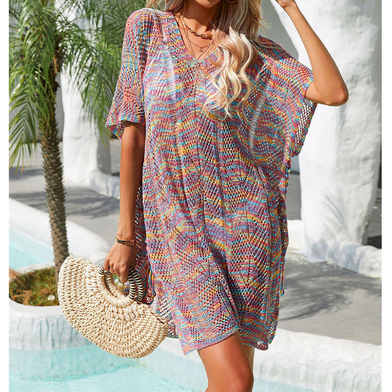 2023 여름 새로운 국경 간 대외 무역 유럽과 미국 아마존 여성 니트 느슨한 자외선 차단제 비키니 비치 블라우스스토어 가기
