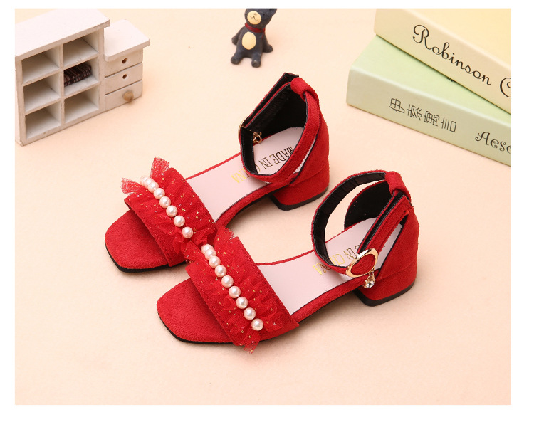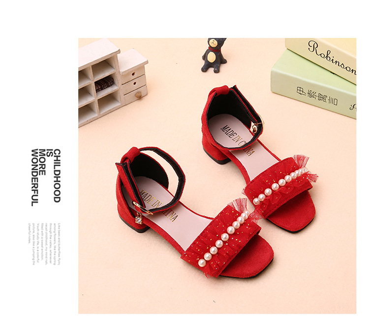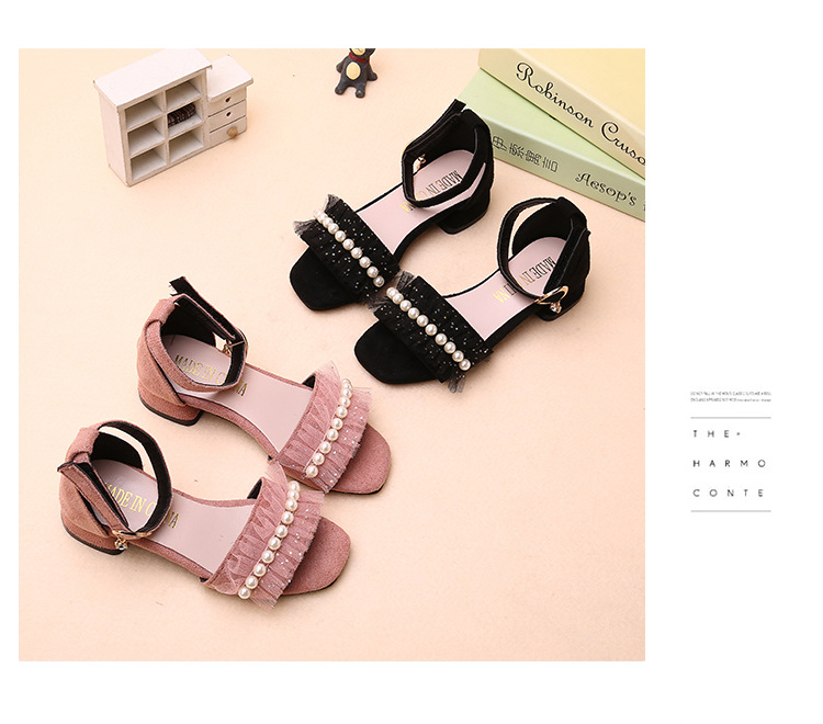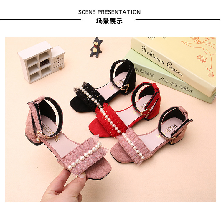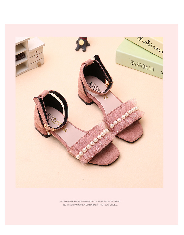 여자 신발 하이힐 샌들 2025 여름 새로운 어린 소녀 활 부드러운 바닥 오픈 발가락 공주 신발 중형 및 대형 어린이 신발스토어 가기