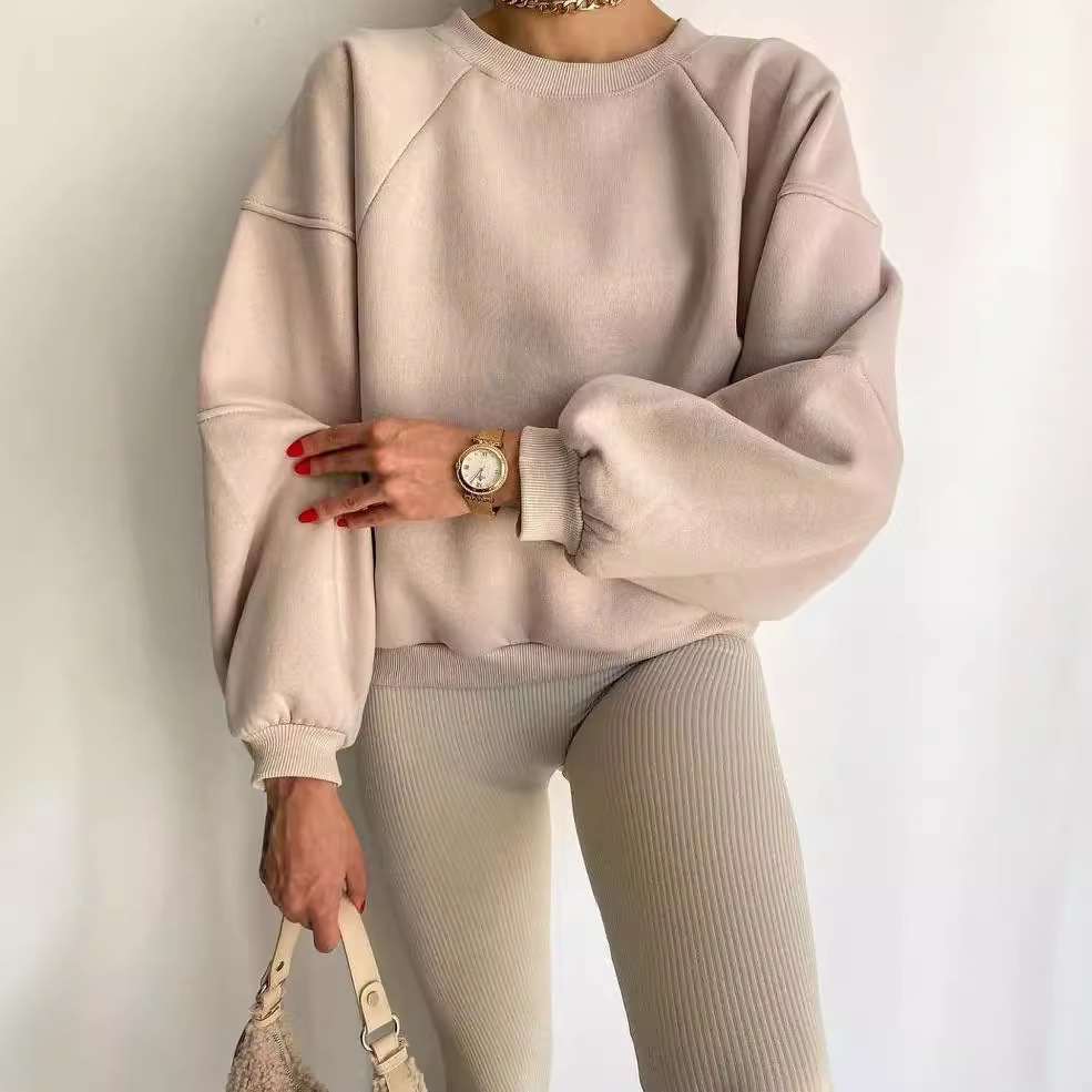 2023 유럽과 미국의 국경 간 새로운 아마존 라운드 넥 스티칭 긴 소매 단색 기본 올 매치 스웨터 스웨터스토어 가기