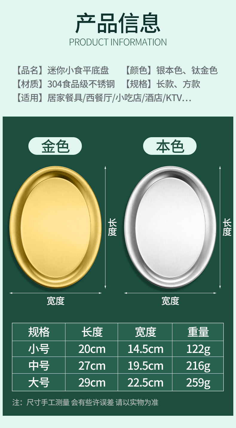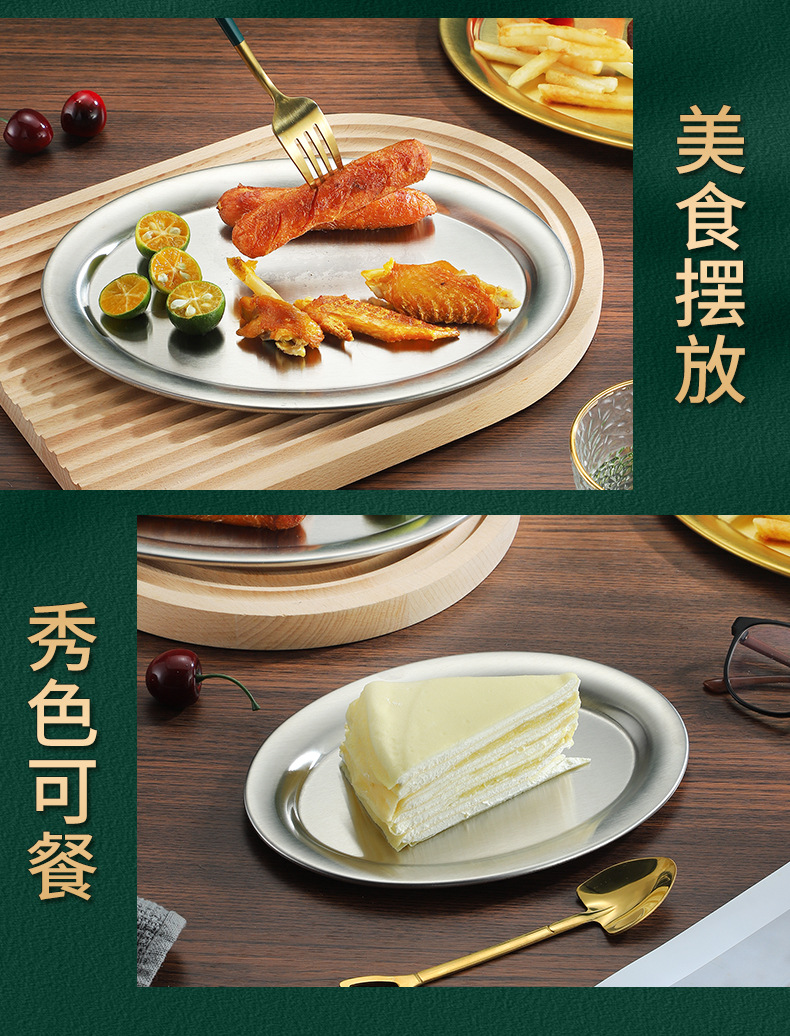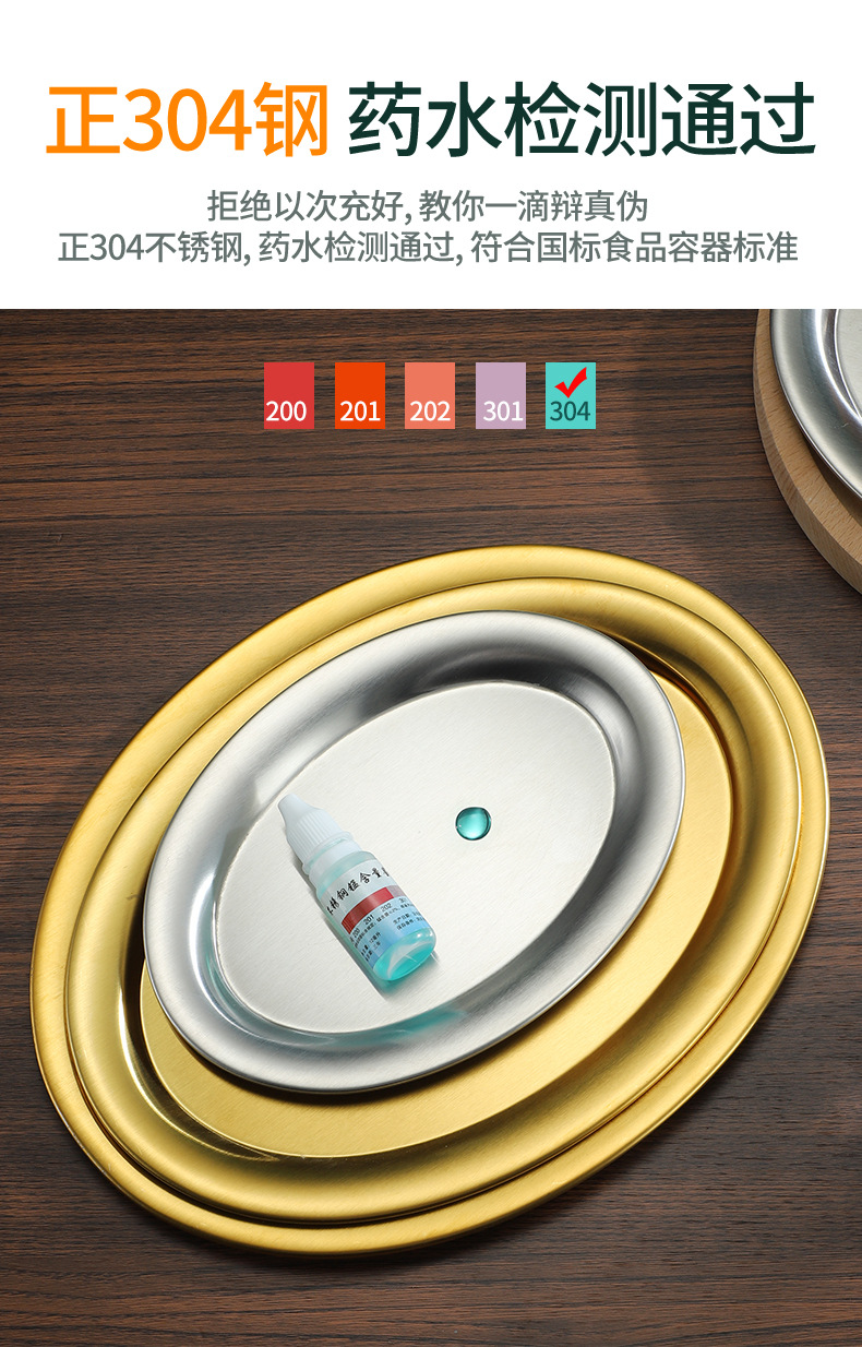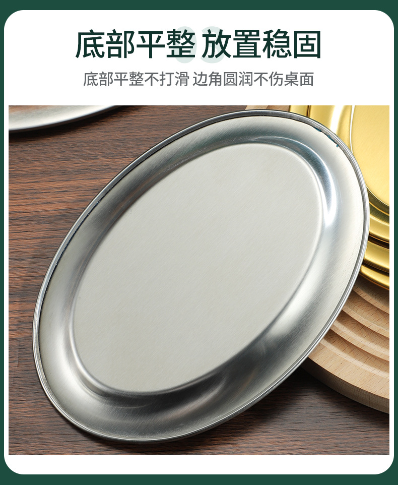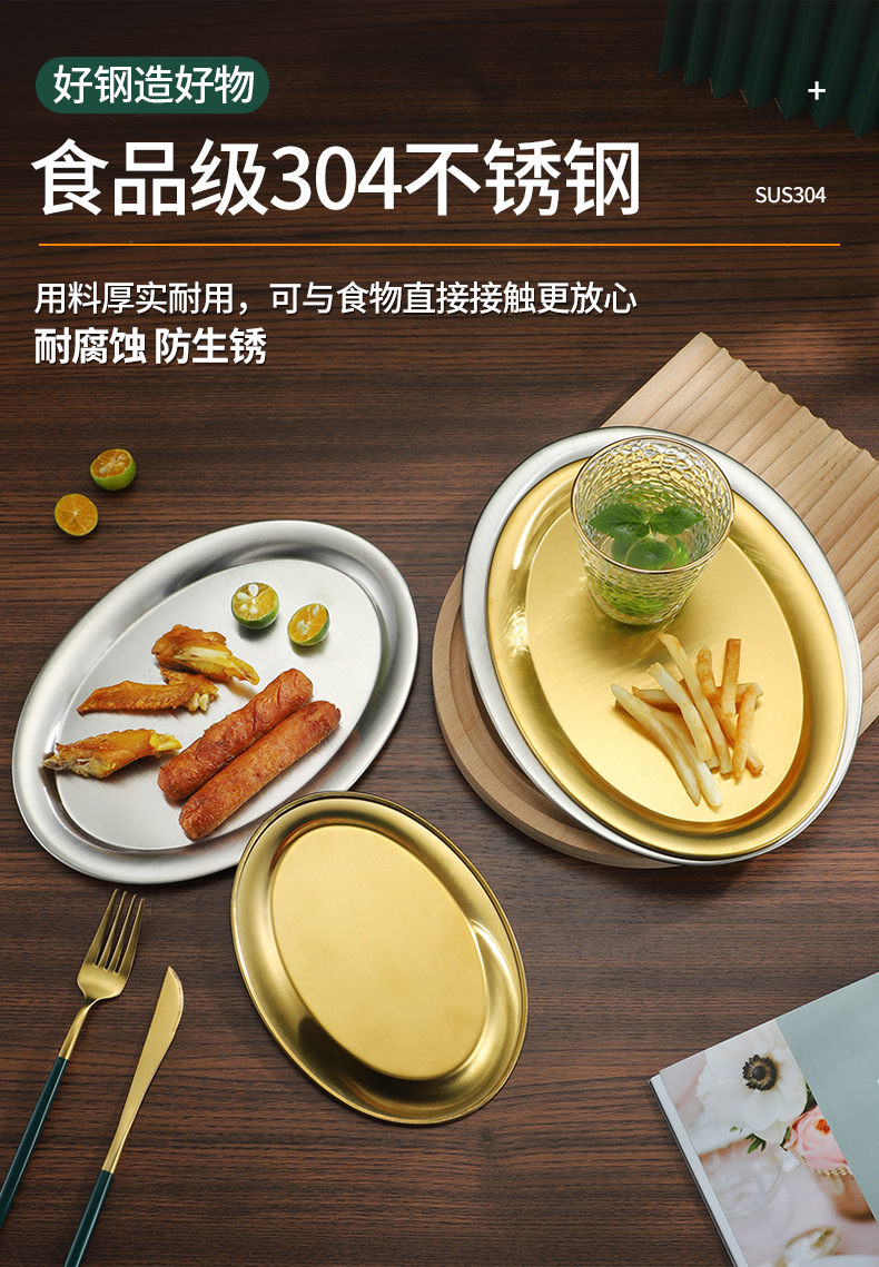 304 스테인레스 스틸 찐 생선 접시 한국식 바베큐 접시 계란 모양의 접시 황금 타원형 접시 트레이 플랫 플레이트 스낵 접시 접시