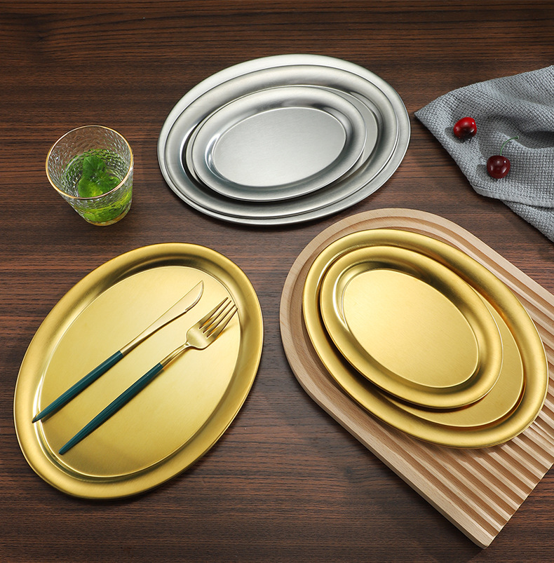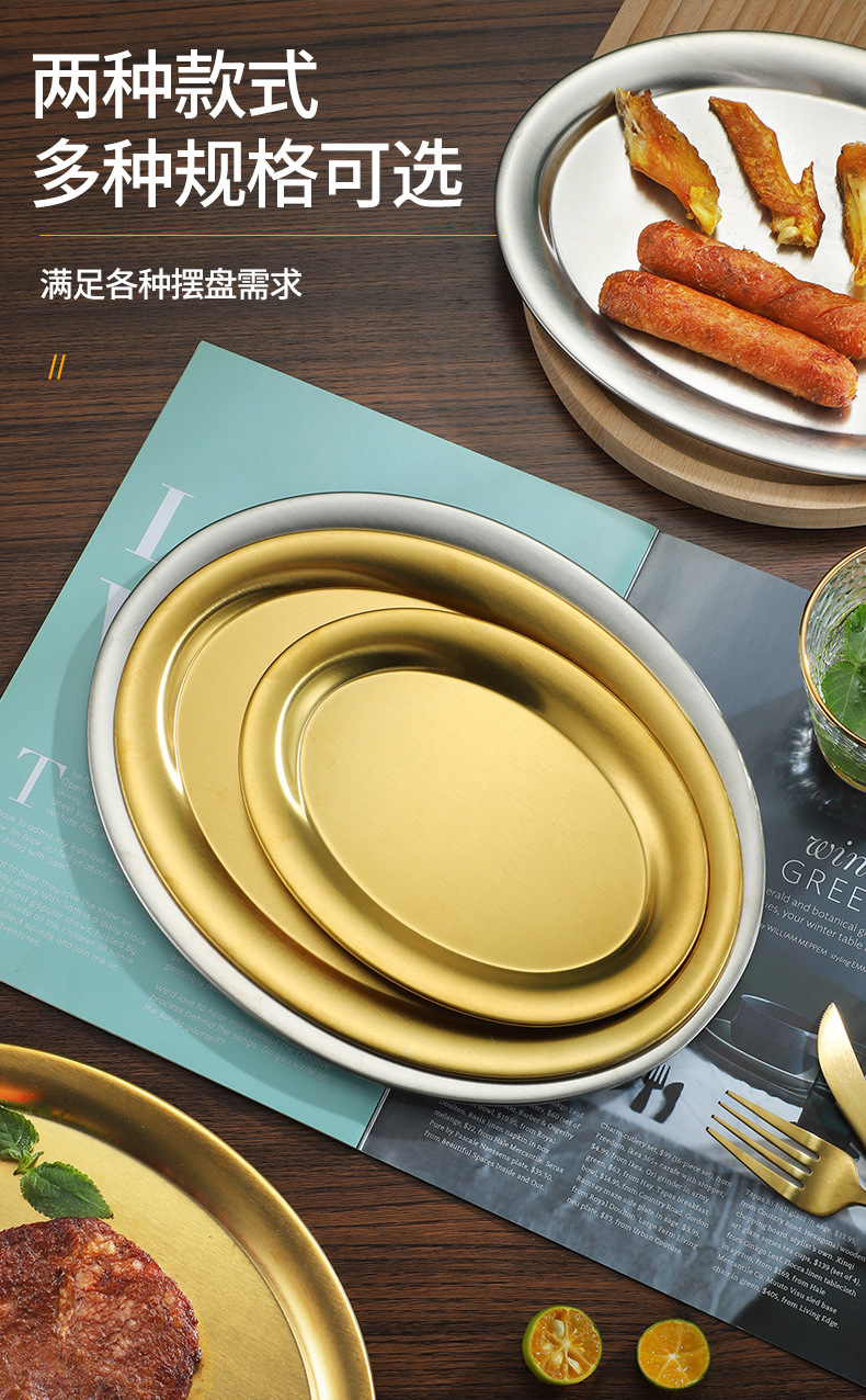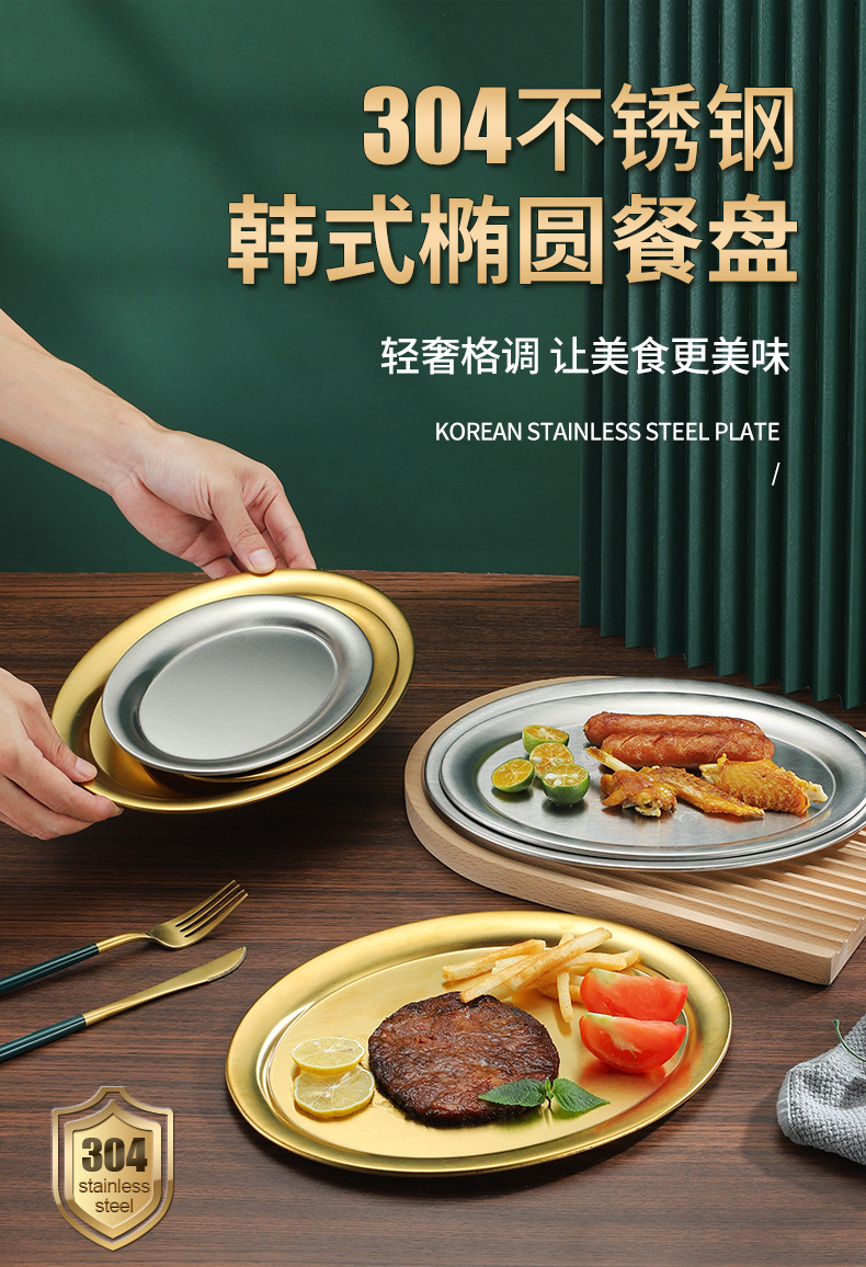 304 스테인레스 스틸 찐 생선 접시 한국식 바베큐 접시 계란 모양의 접시 황금 타원형 접시 트레이 플랫 플레이트 스낵 접시 접시스토어 가기