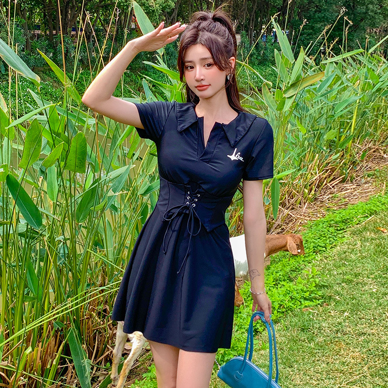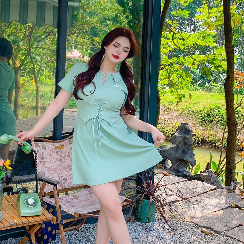플러스 사이즈 수영복 여성 지방 mm200 kg 배꼽 슬림 스포츠 스플릿 스커트 온천 반팔 2023 New스토어 가기