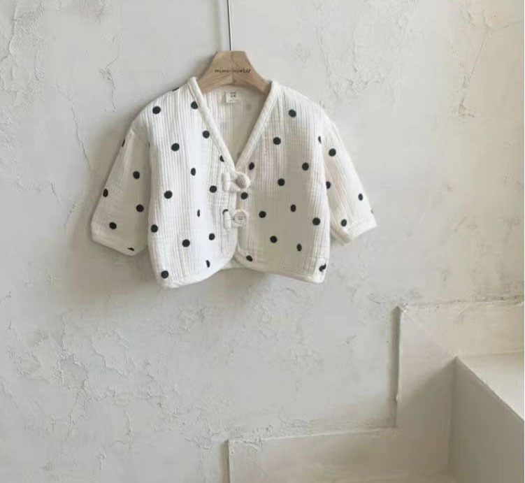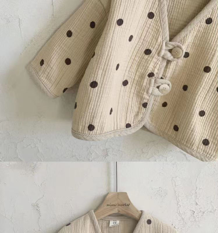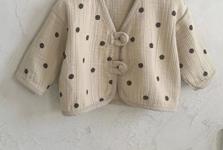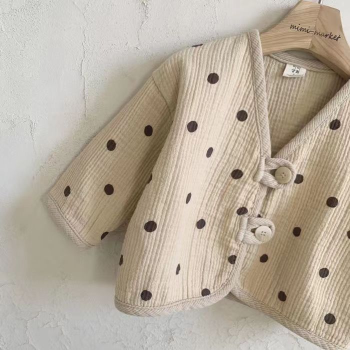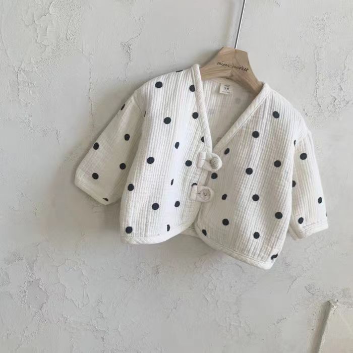 한국 유아 봄과 가을 소년과 소녀를위한 새로운 긴 소매 코트 아기 물방울 무늬 카디건 아기 외출 작은 카디건 코트스토어 가기