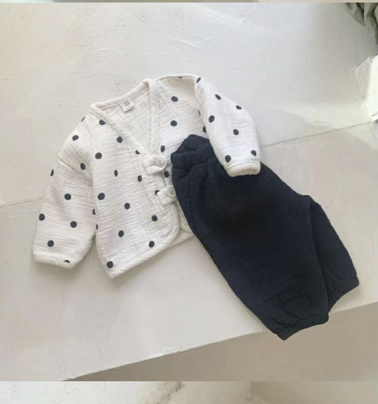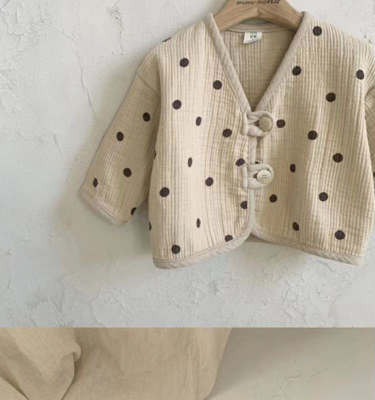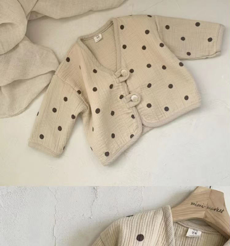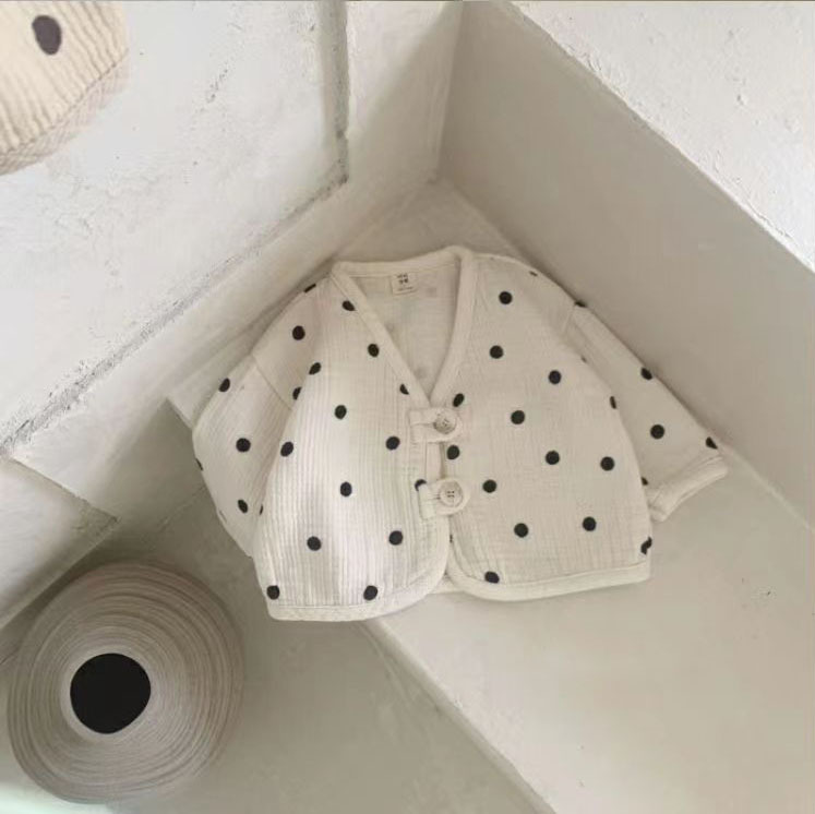 한국 유아 봄과 가을 소년과 소녀를위한 새로운 긴 소매 코트 아기 물방울 무늬 카디건 아기 외출 작은 카디건 코트