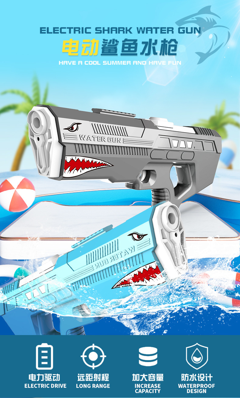 전기 상어 물총 크로스 국경 새로운 방수 업그레이드 야외 해변 물 전투 장난감 도매스토어 가기