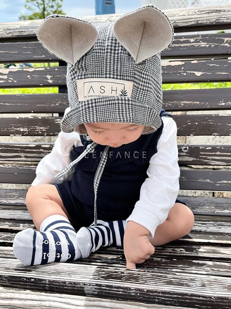 • 다람쥐 귀 쌀 회색 격자 태아 모자
