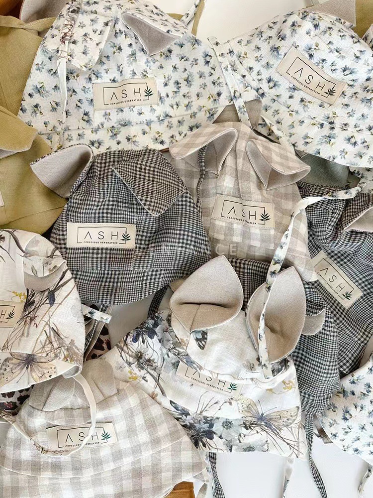 ASH 아기 아기 동물 귀 귀여운 어부 모자 통기성 린넨 태아 모자