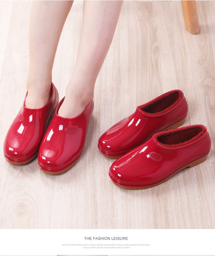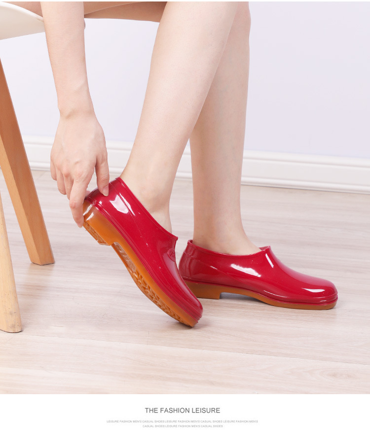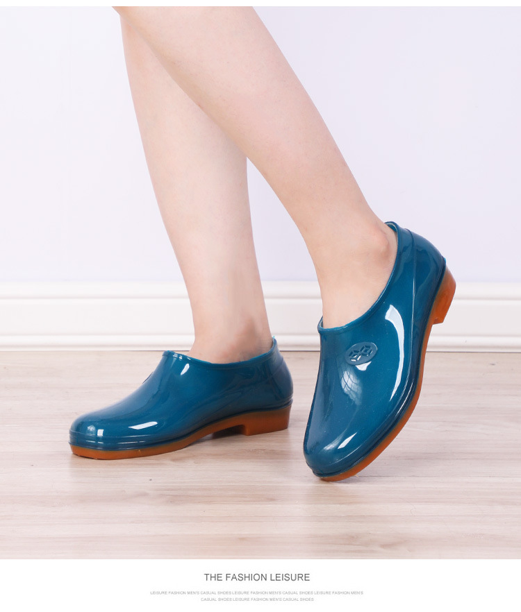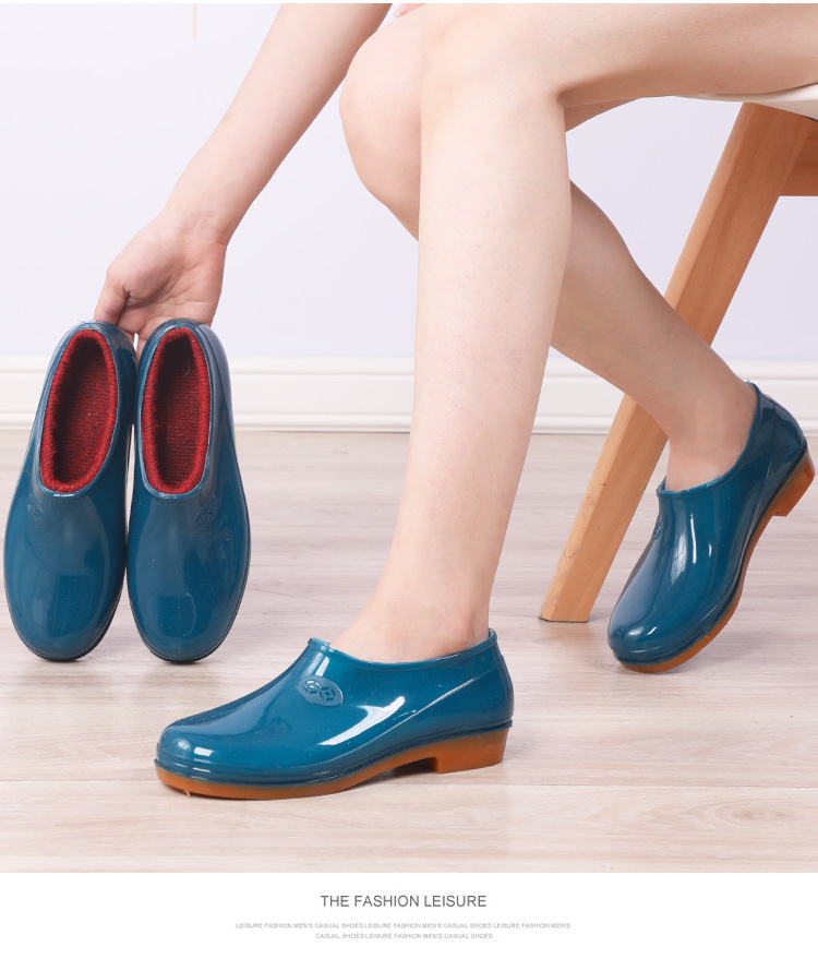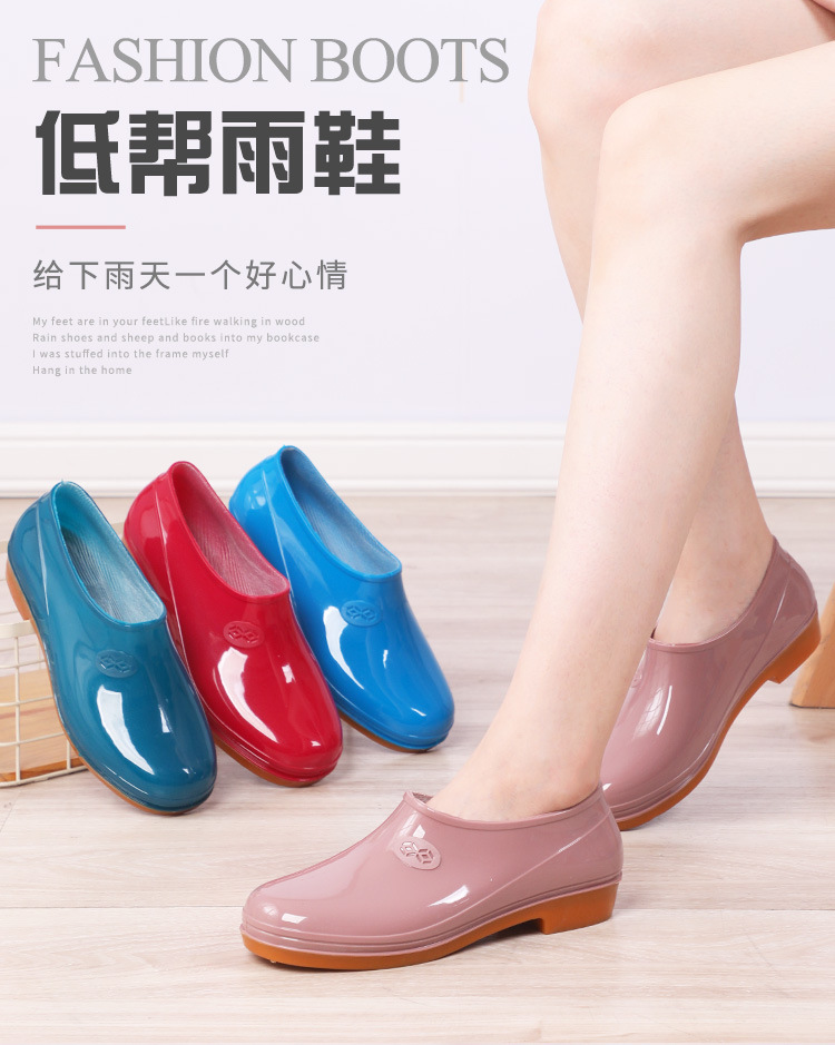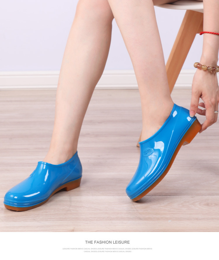 1 단계 로우 탑 봄과 가을 여성용 레인 부츠 깨끗하고 위생적인 시간당 근로자 미끄럼 방지 장화 고무 신발 수통 따뜻한 물 신발스토어 가기