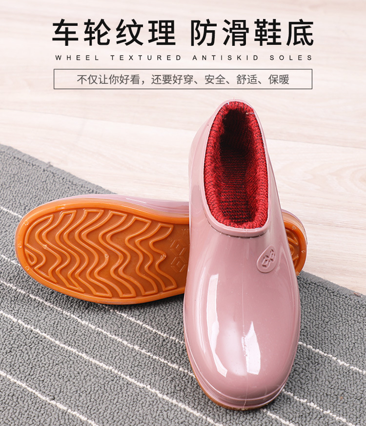 1 단계 로우 탑 봄과 가을 여성용 레인 부츠 깨끗하고 위생적인 시간당 근로자 미끄럼 방지 장화 고무 신발 수통 따뜻한 물 신발
