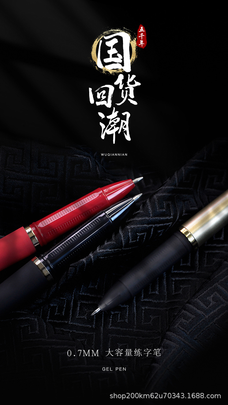 오천년 W-428 블랙 대용량 젤 펜 레드 0.7mm 펜 카본 서예 선생님 추천