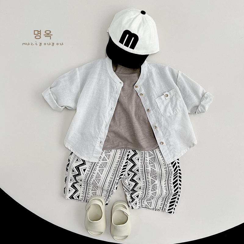 크림 컬러 티셔츠 ~ 2025 여름 신작 아동 반팔 소년 탑 소녀 면화 한국 스타일 일본 아동복스토어 가기