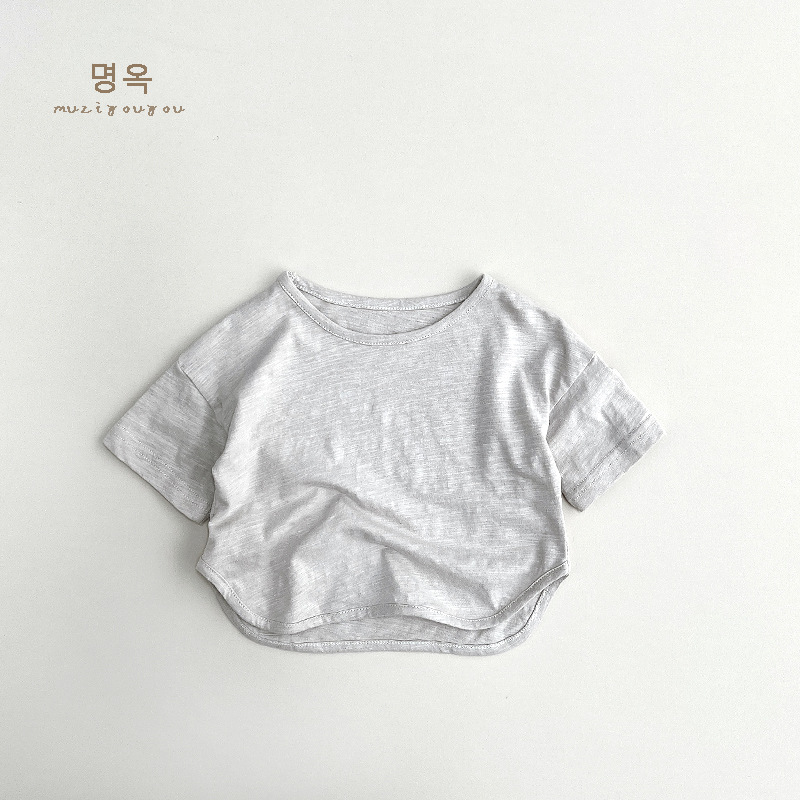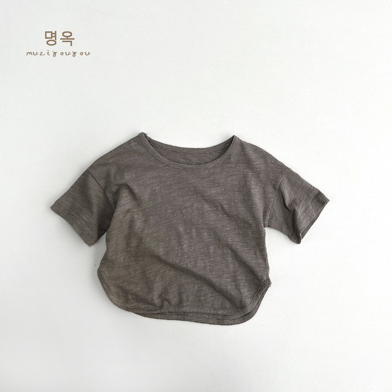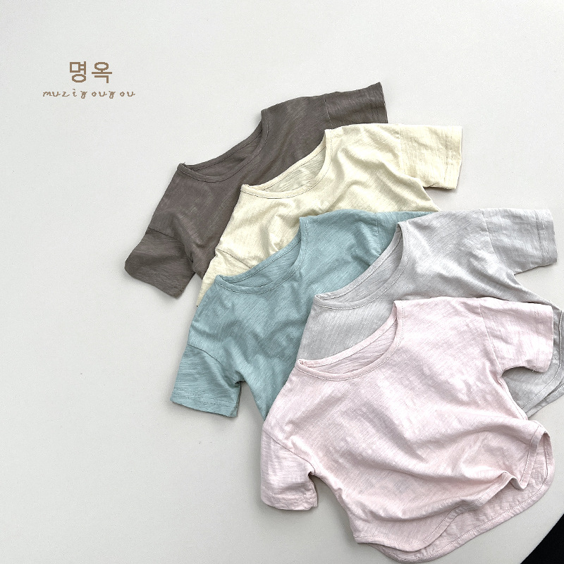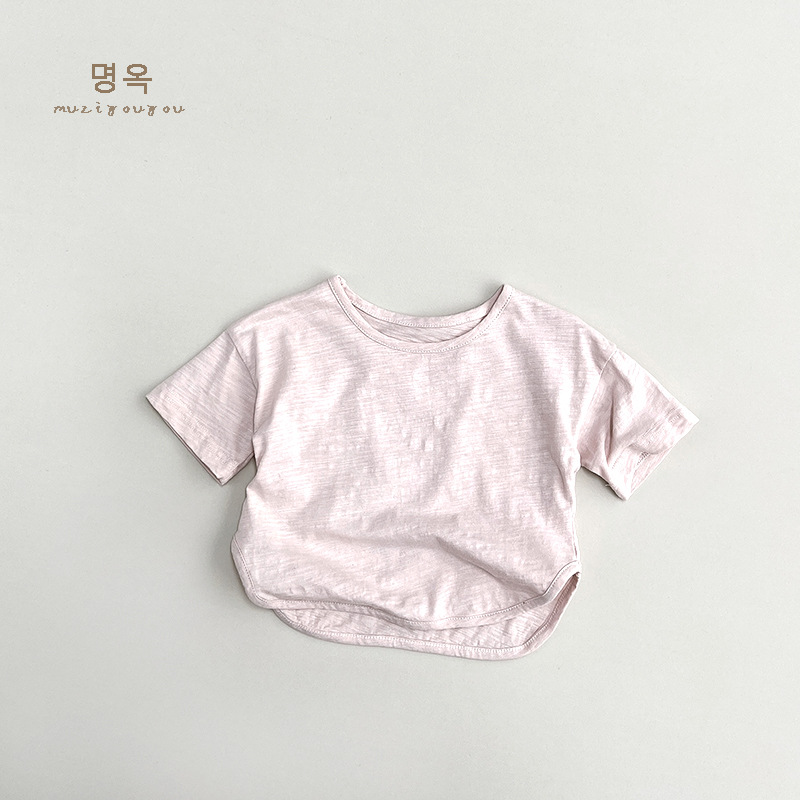 크림 컬러 티셔츠 ~ 2025 여름 신작 아동 반팔 소년 탑 소녀 면화 한국 스타일 일본 아동복