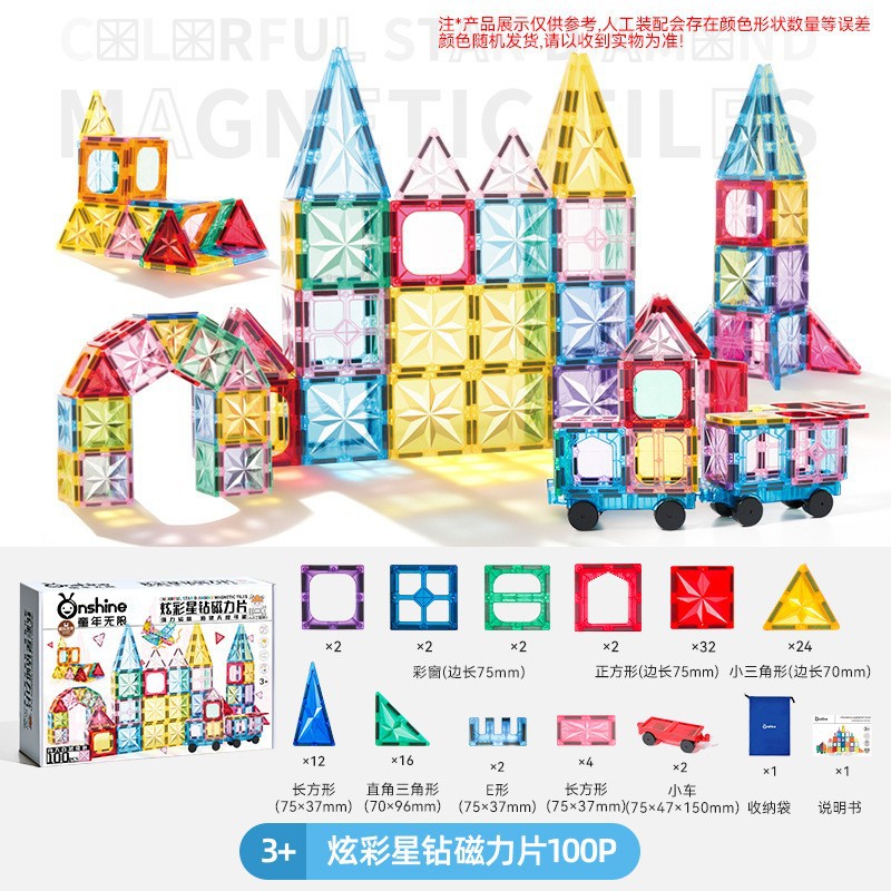 Onshine 어린이 자연 자기 필름 4D 컬러 창 퍼즐 빌딩 블록 조립 자동차 변경 자기 빌딩 블록 장난감스토어 가기