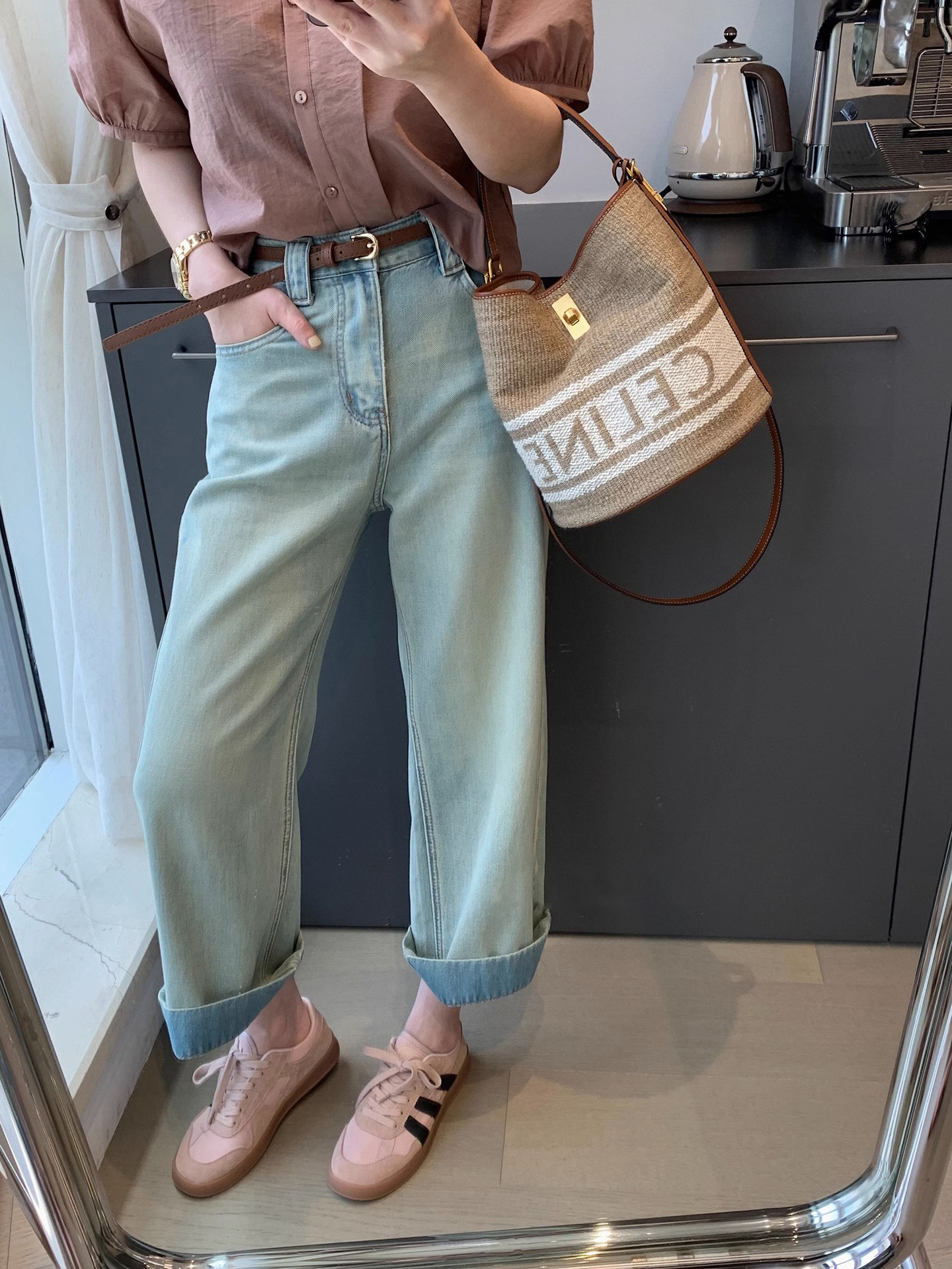 패션 크롭 스트레이트 청바지 여성용 2023 여름 새로운 한국 스타일 심플 느슨한 연령 감소 모든 매치 와이드 레그 팬츠스토어 가기