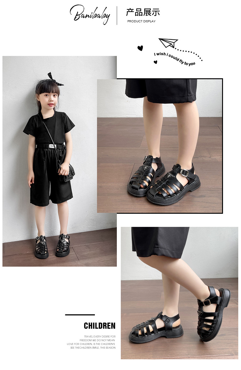 어린이 해변 신발 소녀 로마 샌들 2024 여름 새 어린 소녀 공주 신발 유행 아기 신발 미끄럼 방지스토어 가기