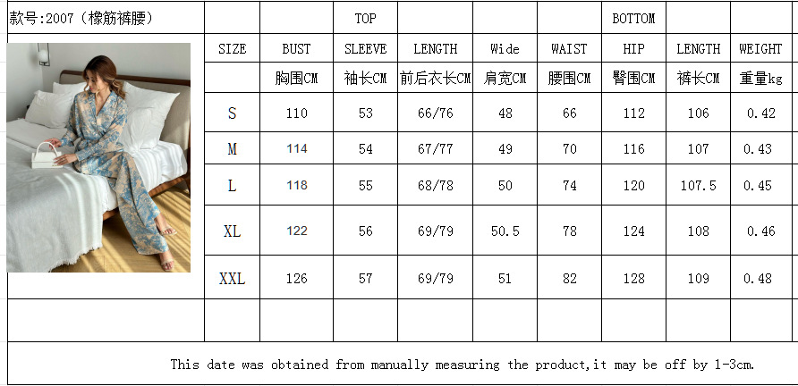 유럽과 미국의 크로스보더 신상 패션 프렌치 프린트 긴팔 레이스업 셔츠와 하이웨이스트 와이드 팬츠 여성 정장스토어 가기