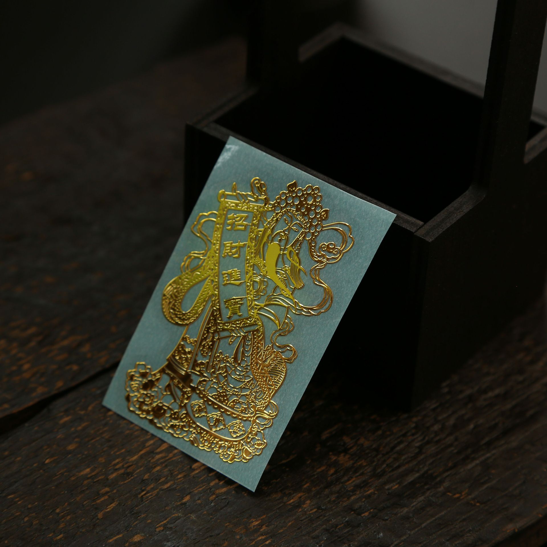 웬 Caishen 행운의 보물 금속 휴대 전화 스티커 행운의 컴퓨터 데스크탑 황금 스티커 문화 용품 스티커스토어 가기