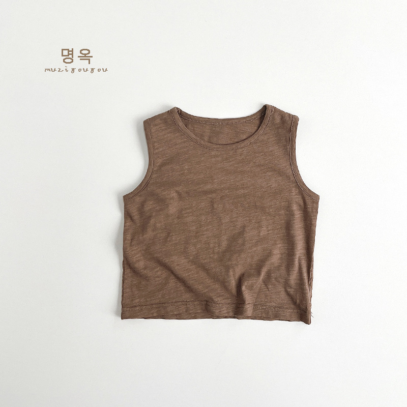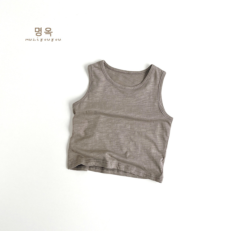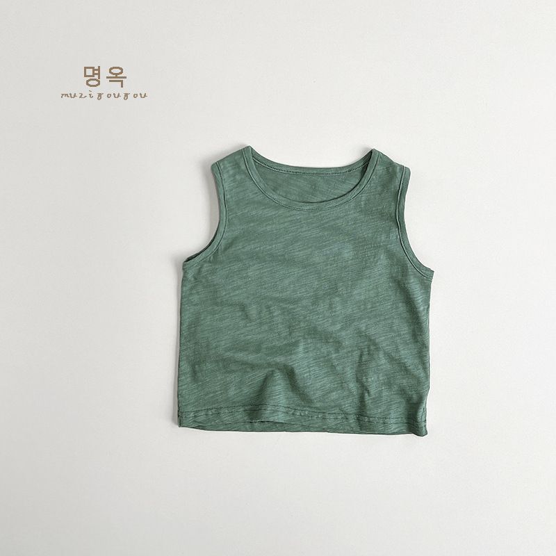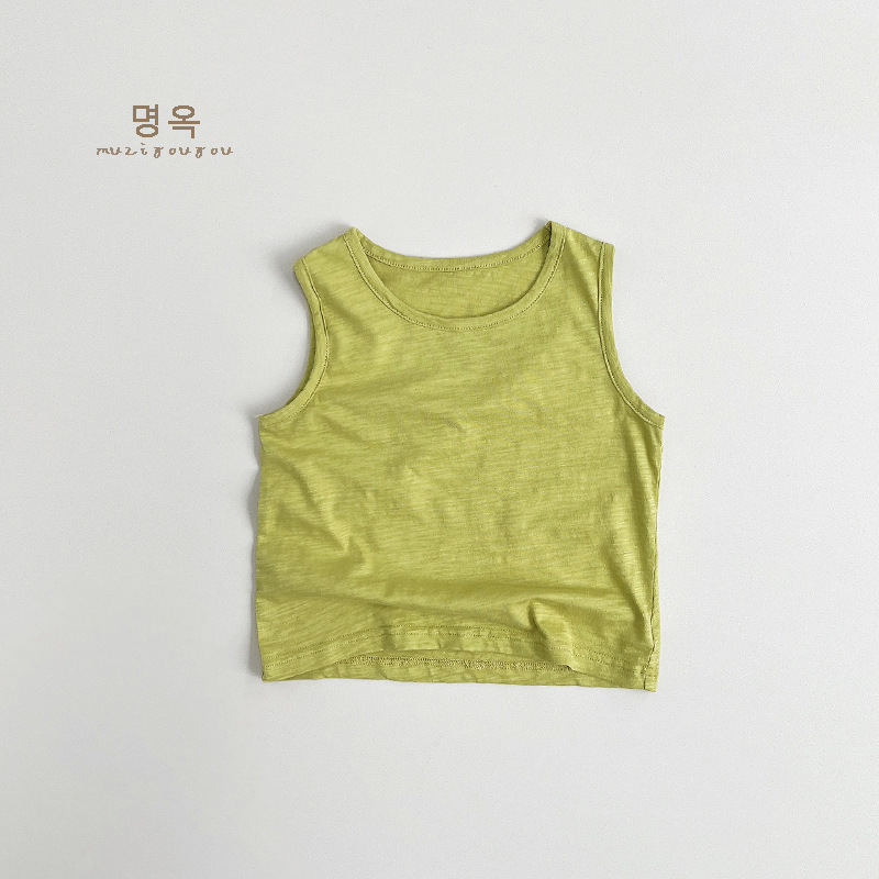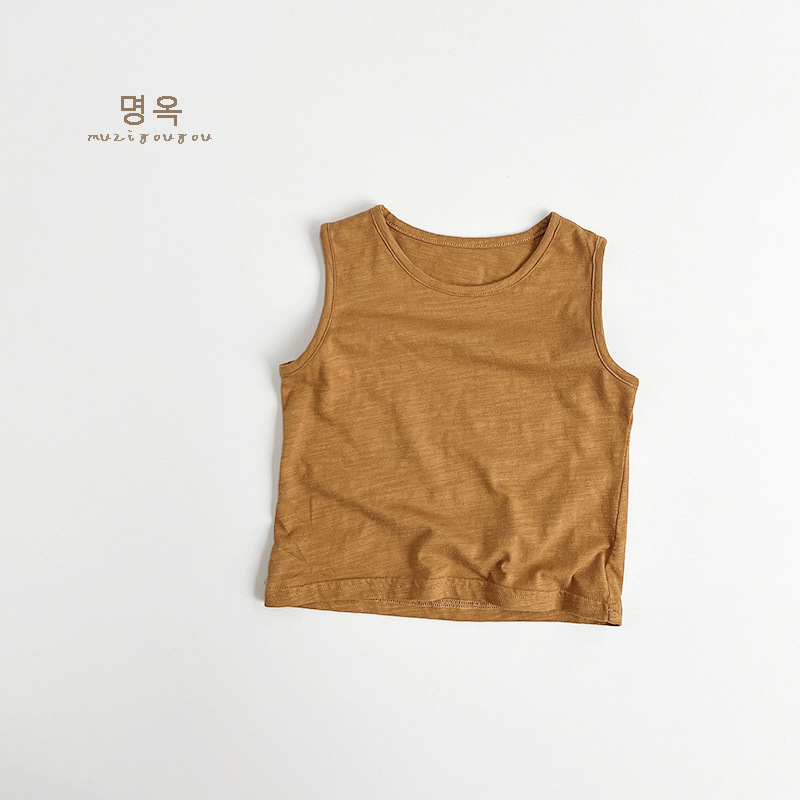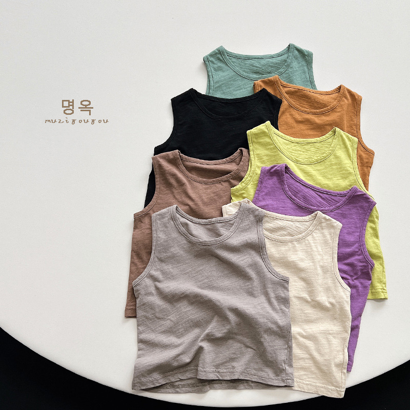 어린이 대나무 면화 조끼 2025 여름 새로운 스타일 한국어 버전 일본식 어린이 민소매 면화 티셔츠 소년과 소녀를위한 아동 의류스토어 가기