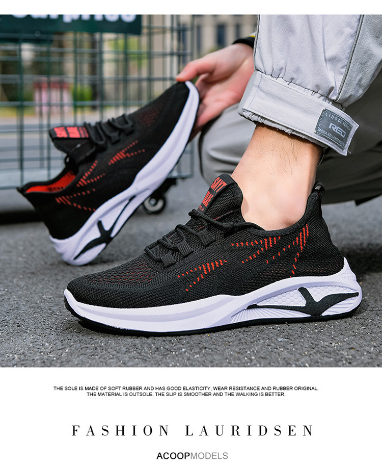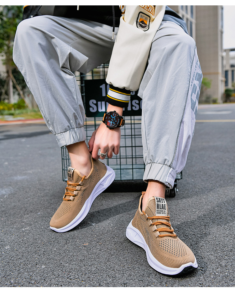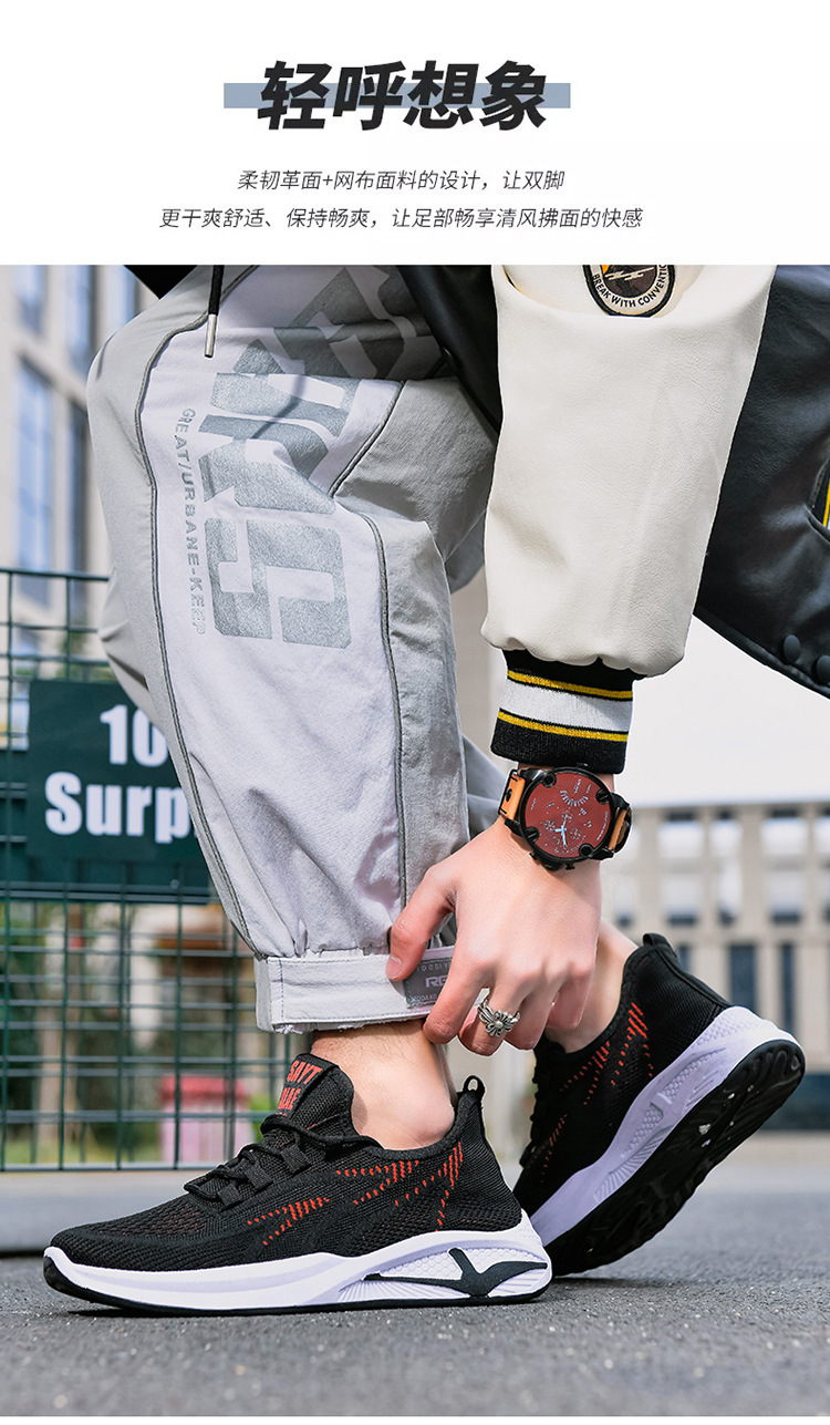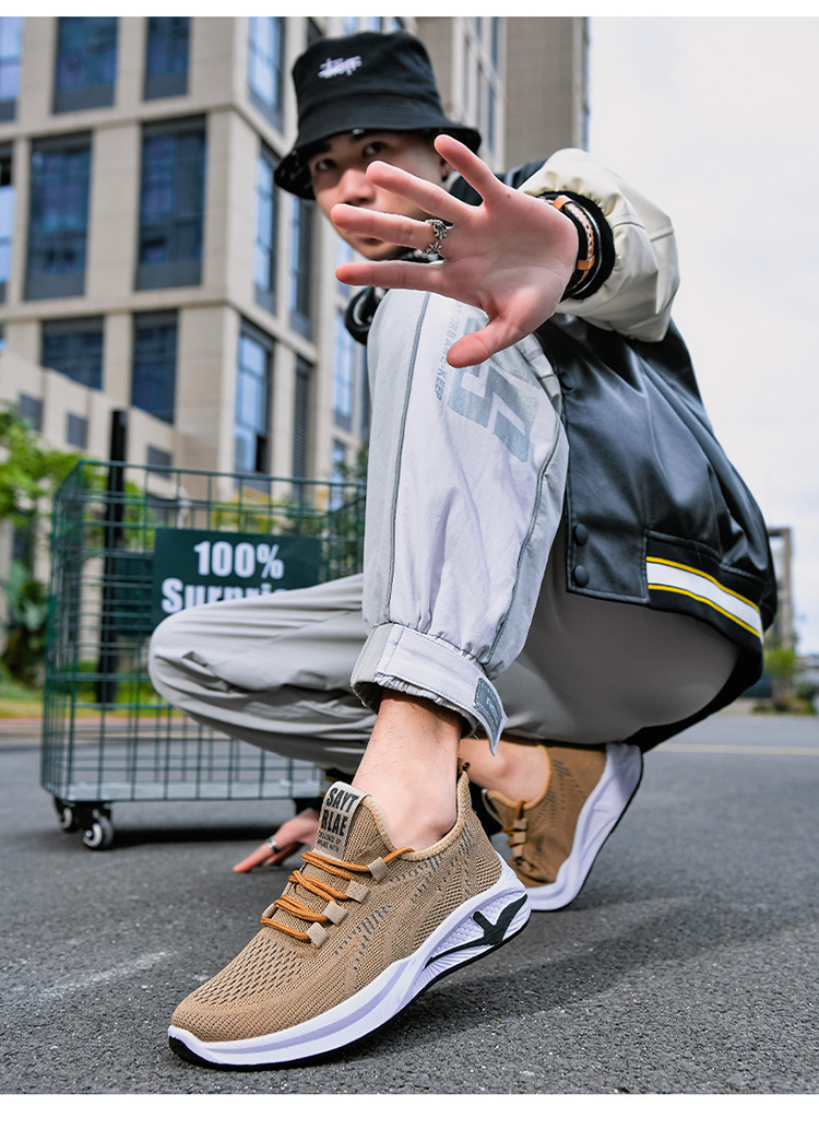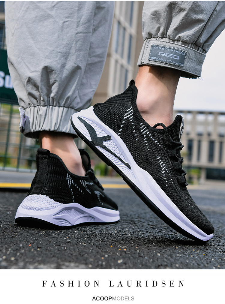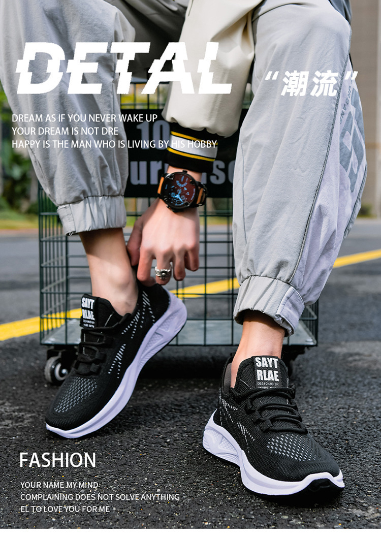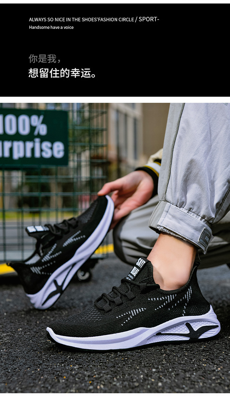 남성 운동화 2025 봄 신상 런닝화, 패셔너블한 한국 스타일 통기성 트렌디 슈즈, 플라이 니트 캐주얼 슈즈, 남성 신발스토어 가기