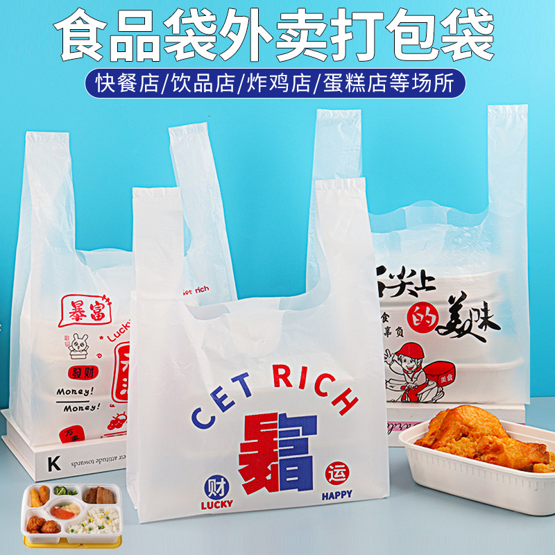 테이크 아웃 포장 가방 두꺼운 도매 만화 조끼 가방 일회용 비닐 봉투 사이버 인기있는 패스트 푸드 가방 포장 가방