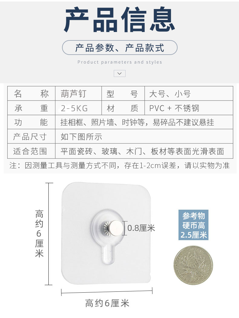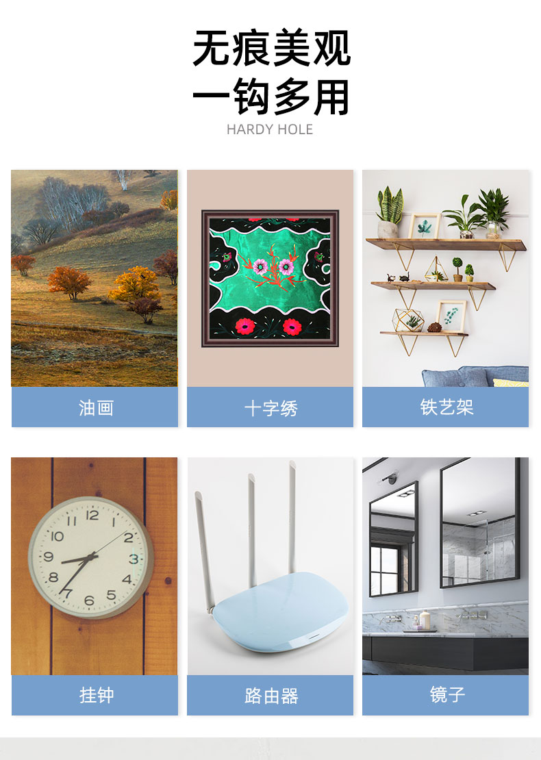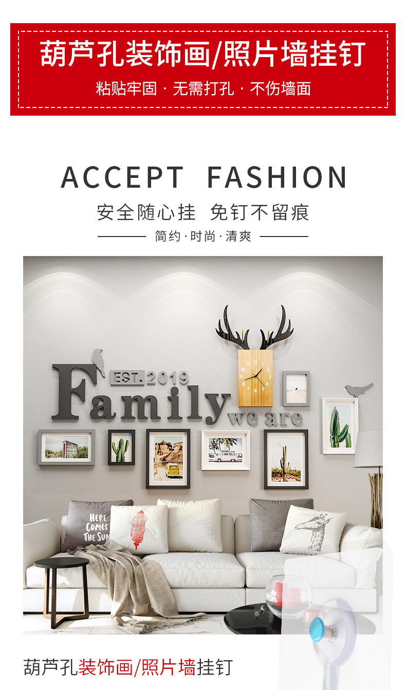 I9EK 펀치 프리 교수형 그림 나사 붙여 넣기 손톱 없는 사진 프레임 후크 웨딩 원피스 사진 벽 거실 교수형 시계 후크 못 없음스토어 가기