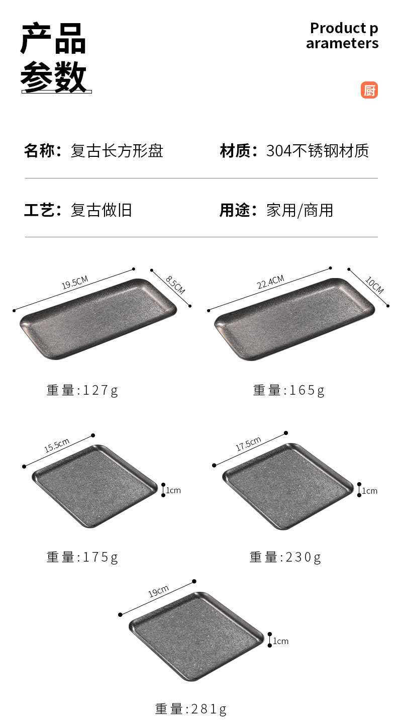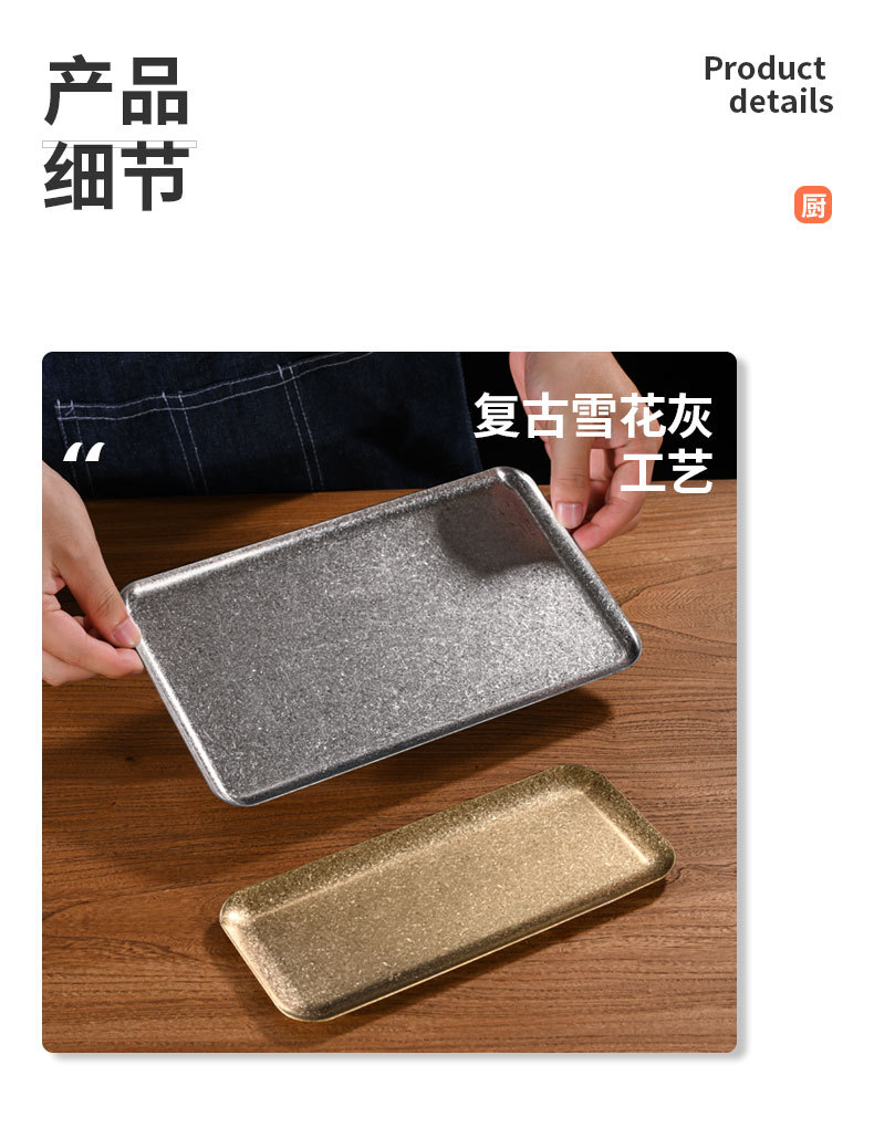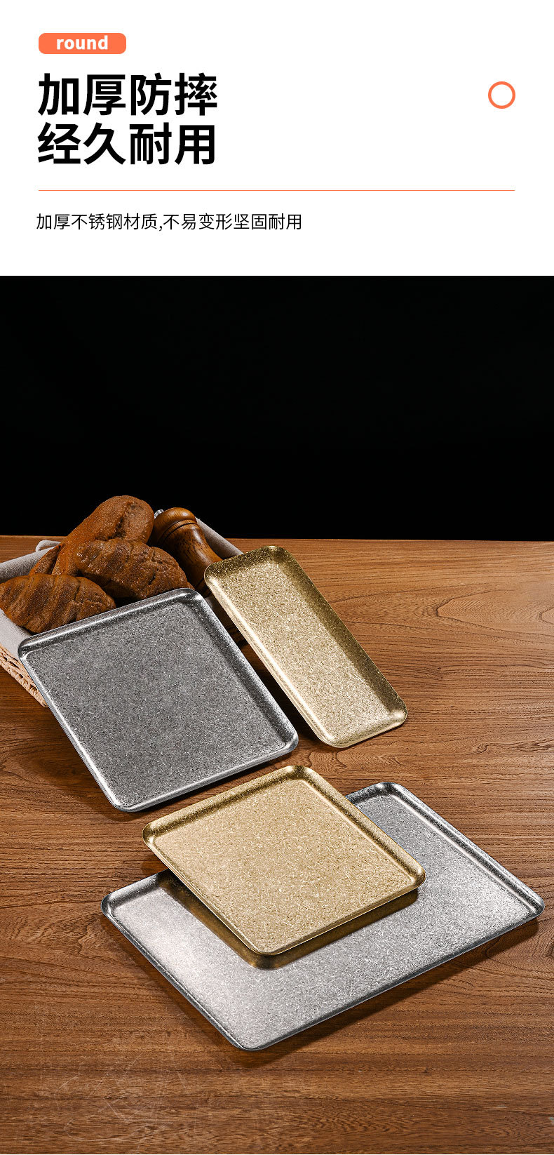 빈티지 스퀘어 플레이트 304 스테인레스 스틸 트레이 카페 딤섬 케이크 플레이트 올드 바베큐 플레이트 커스텀 로고스토어 가기