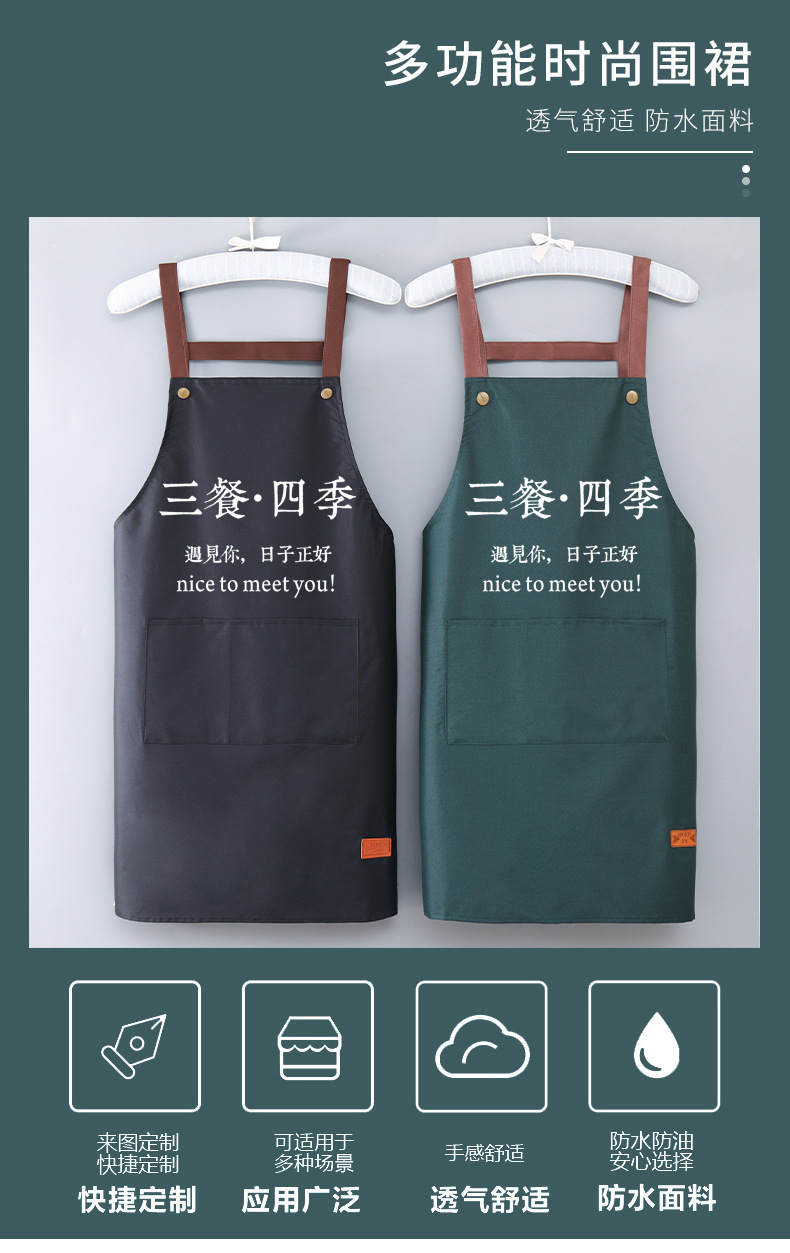 H 스트랩 가죽 구리 버클 방수 앞치마 맞춤 인쇄 가정 주방 우유 찻집 커피 숍 패션 앞치마 도매
