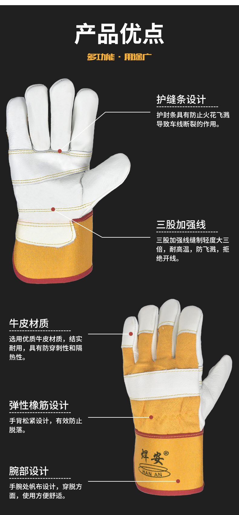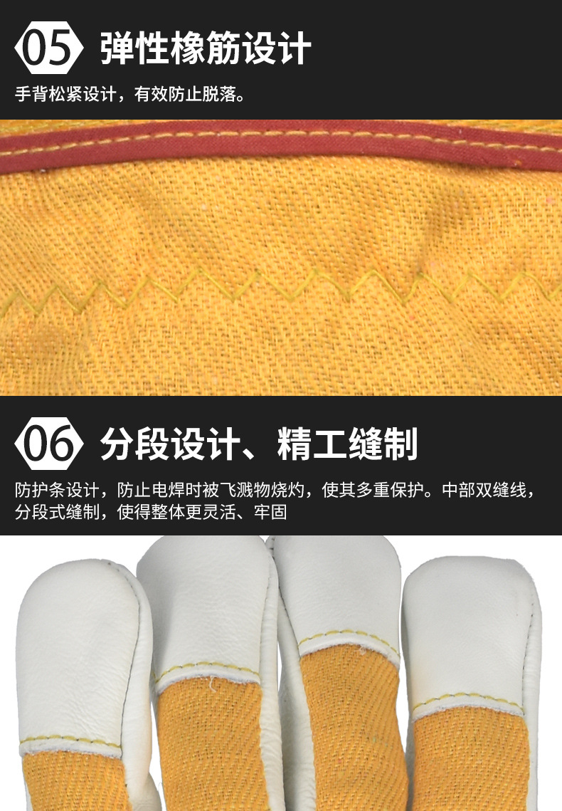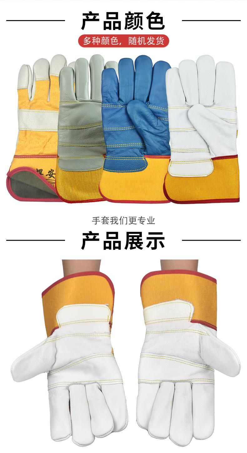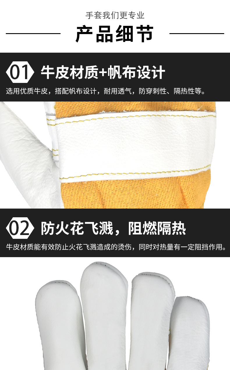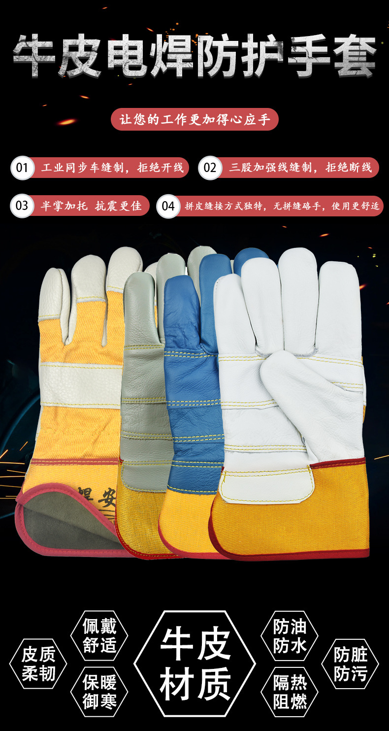 Mingshun 노동 보호 장갑 소 가죽 용접 523 고온 내성 내마모성 가구 상단 레이어 가죽 따뜻한 용접기 장갑스토어 가기