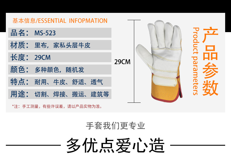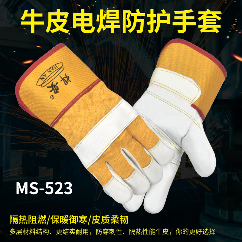Mingshun 노동 보호 장갑 소 가죽 용접 523 고온 내성 내마모성 가구 상단 레이어 가죽 따뜻한 용접기 장갑
