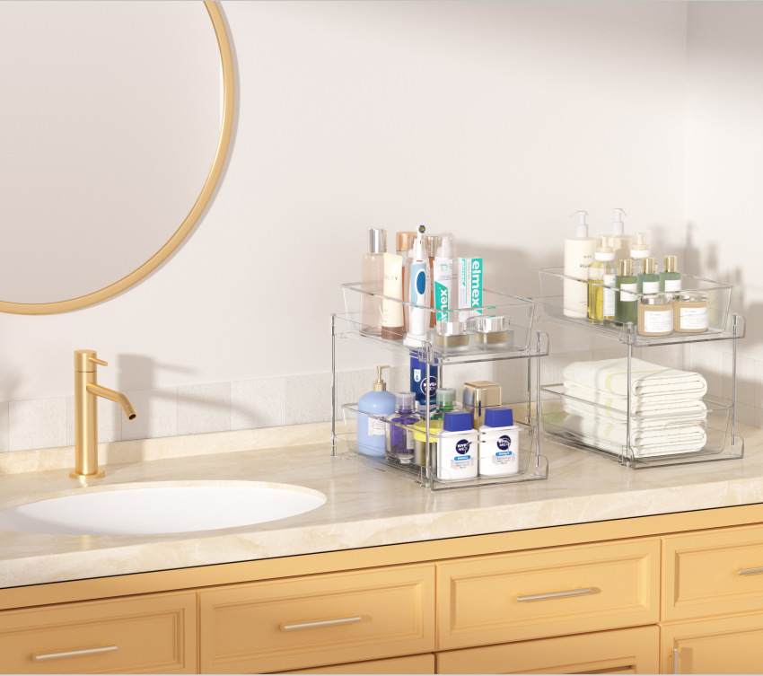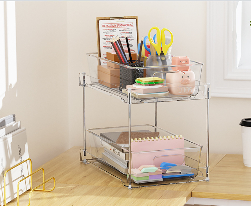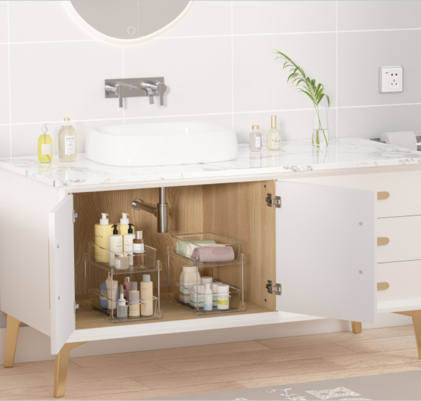 더블 레이어 투명 PET 싱크 랙 전용 크로스 보더 욕실 주방 다기능 스토리지 데스크탑 마무리 랙