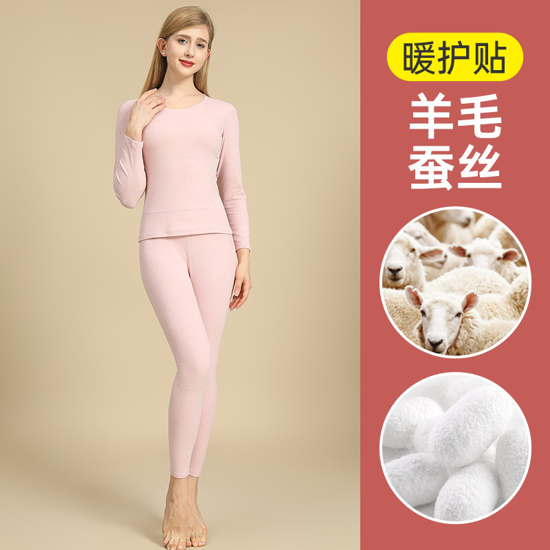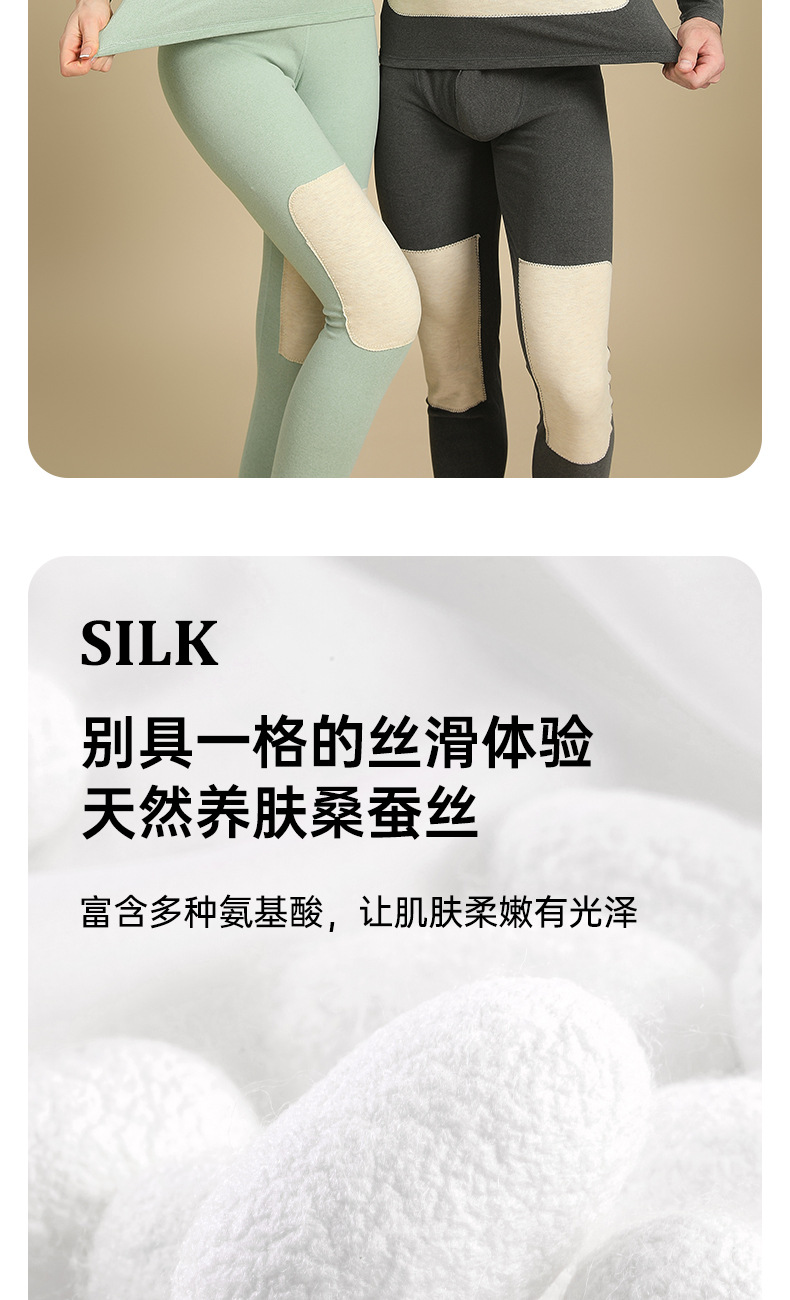 캐시미어 패치 울 남성 가을 옷 및 긴 바지 세트, 베이스 레이어 셔츠, 실크 패치 보온 속옷, 여성용 벨벳 및 두꺼운 소재