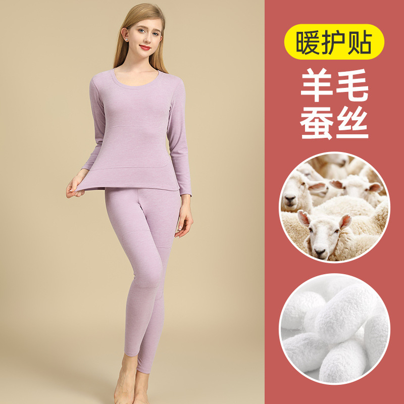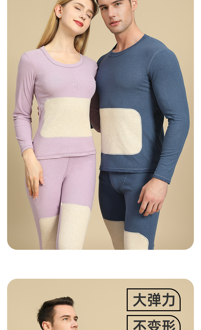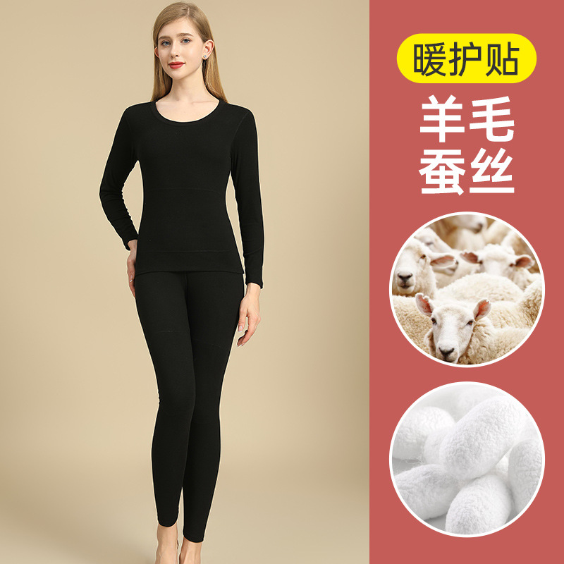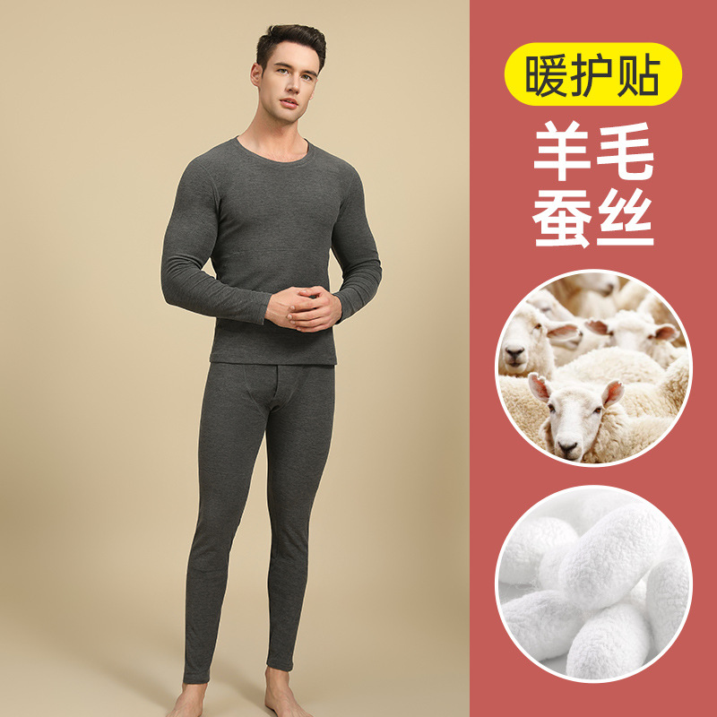 캐시미어 패치 울 남성 가을 옷 및 긴 바지 세트, 베이스 레이어 셔츠, 실크 패치 보온 속옷, 여성용 벨벳 및 두꺼운 소재스토어 가기