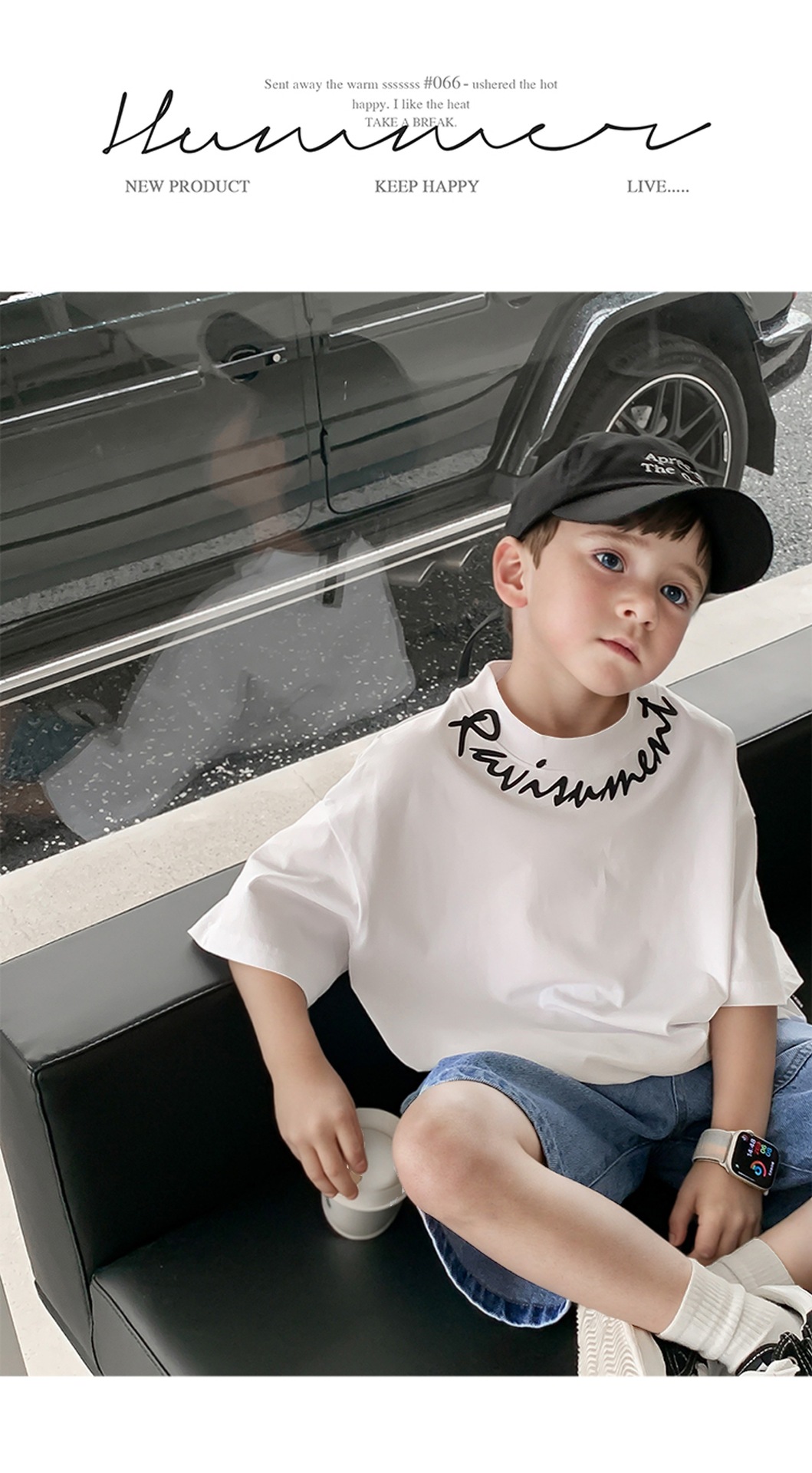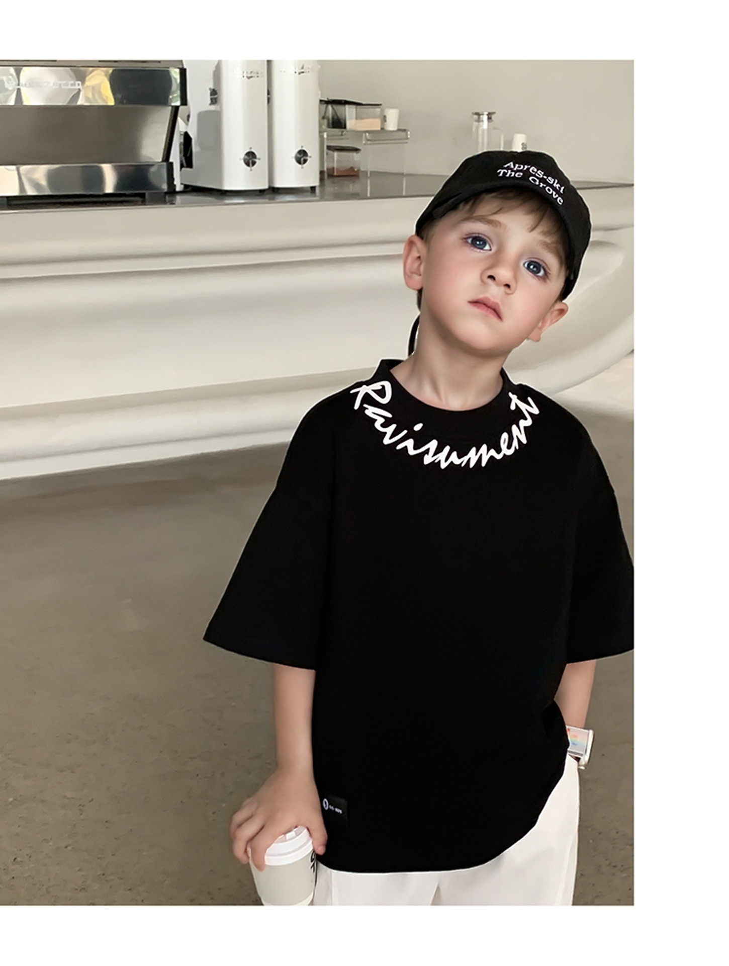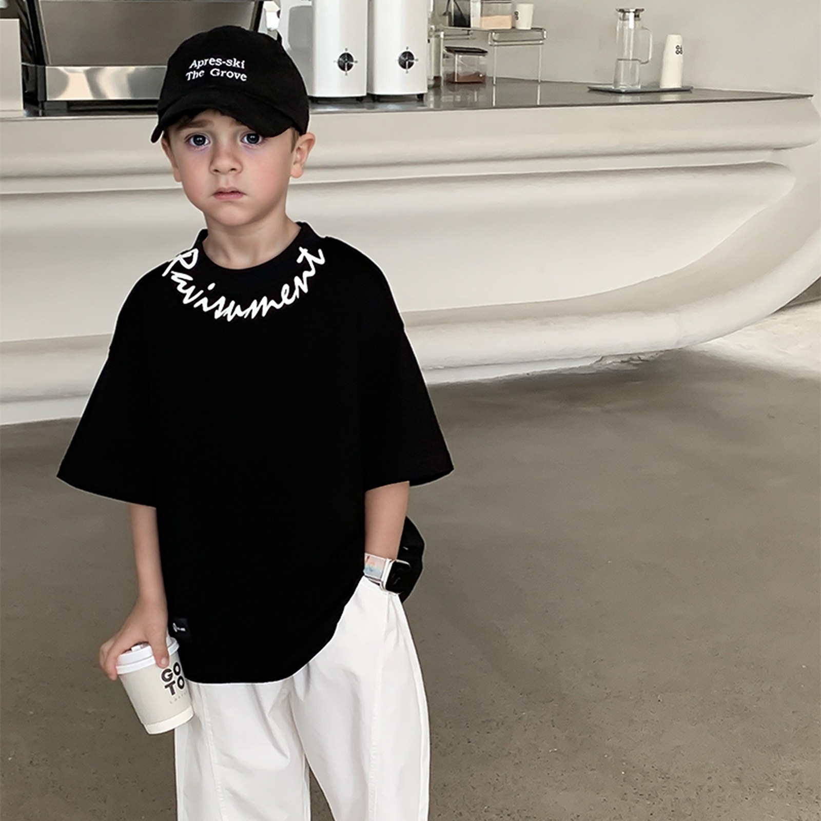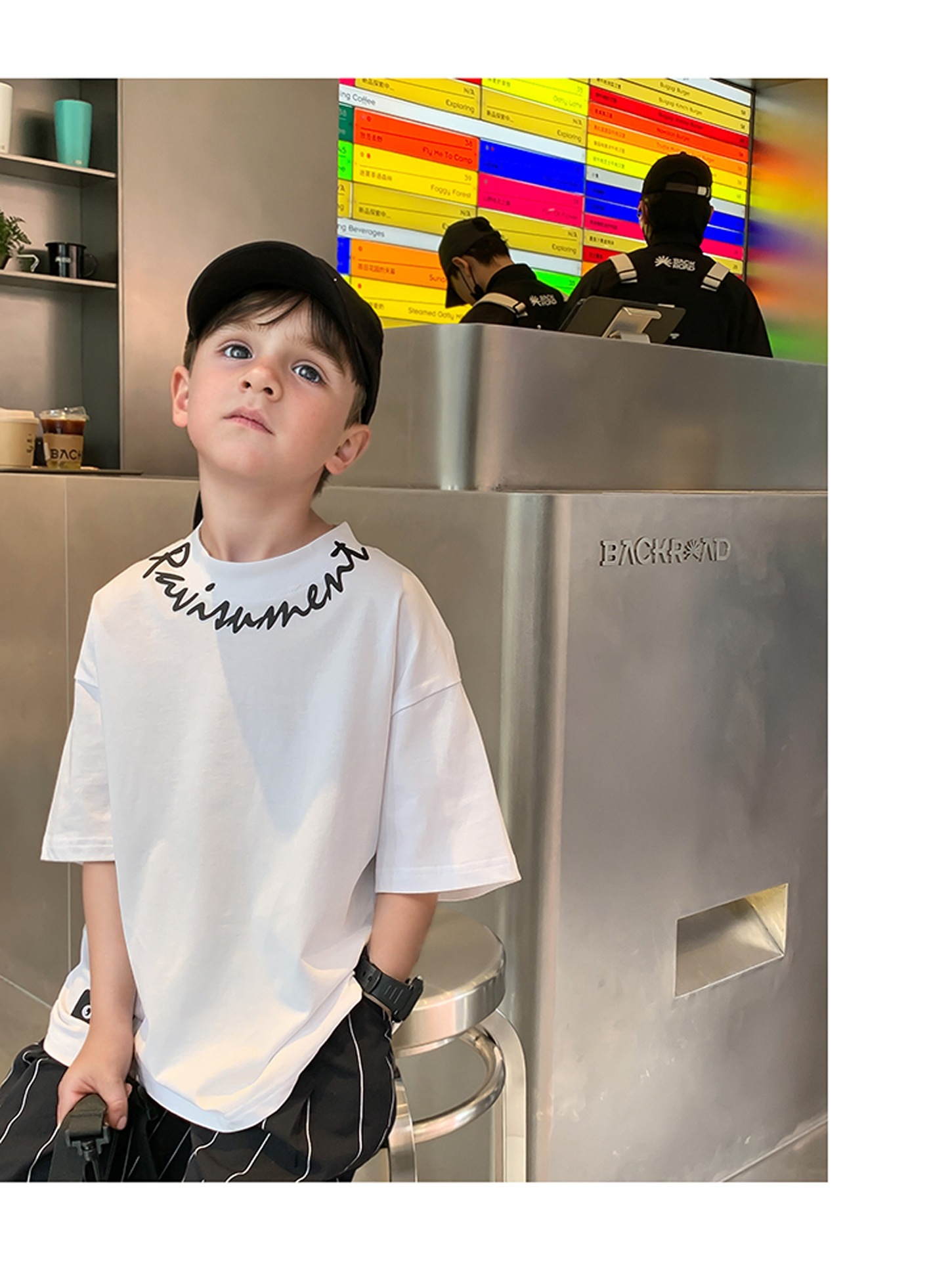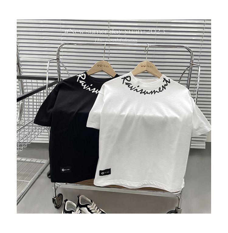 남자의 큰 소년의 둥근 목 반팔 티셔츠 시원하고 잘 생긴 유행 힙합 소년의 여름 순면 탑 스테레오 인쇄스토어 가기