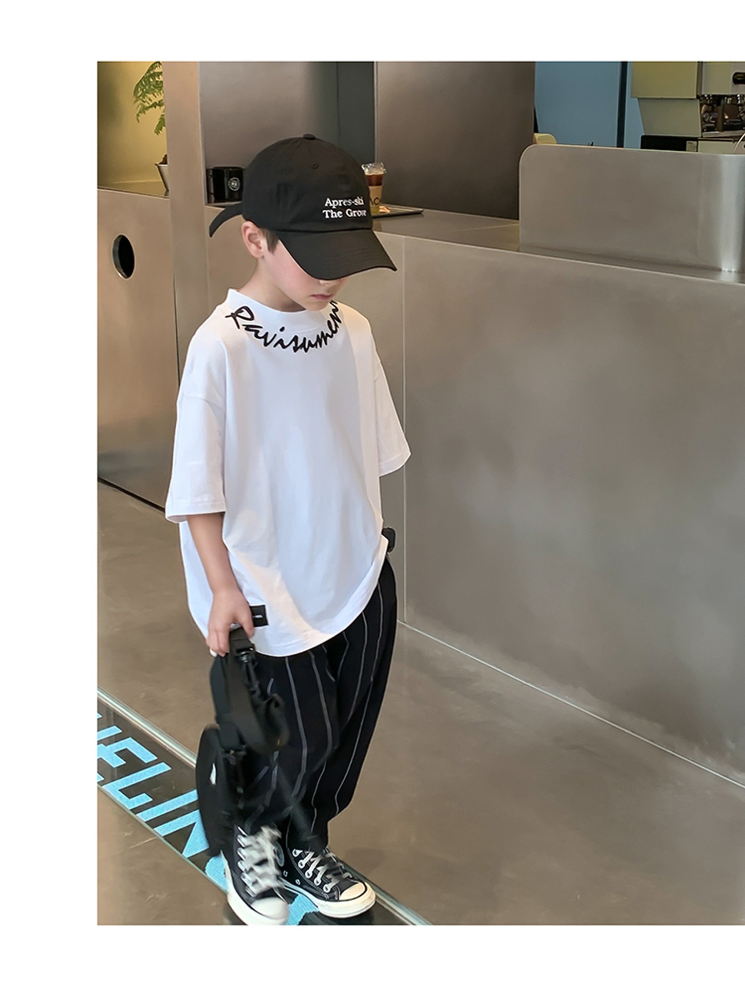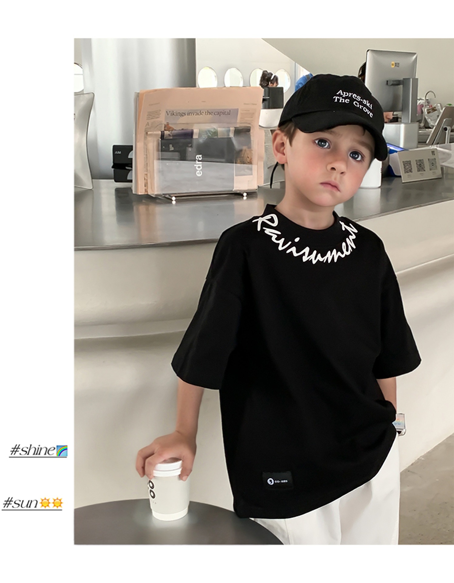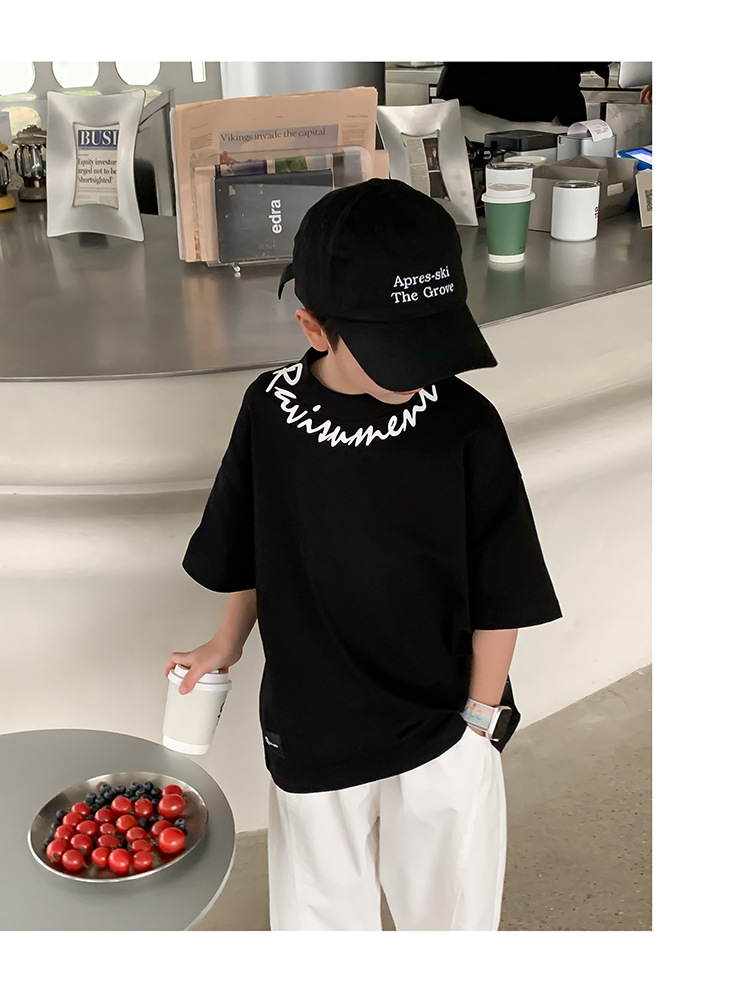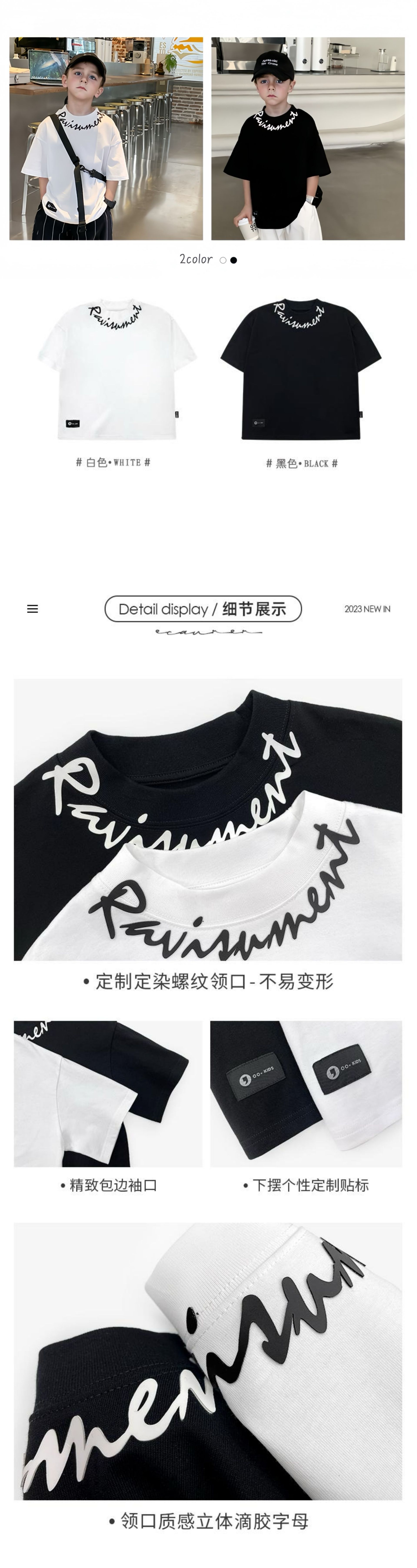 남자의 큰 소년의 둥근 목 반팔 티셔츠 시원하고 잘 생긴 유행 힙합 소년의 여름 순면 탑 스테레오 인쇄스토어 가기