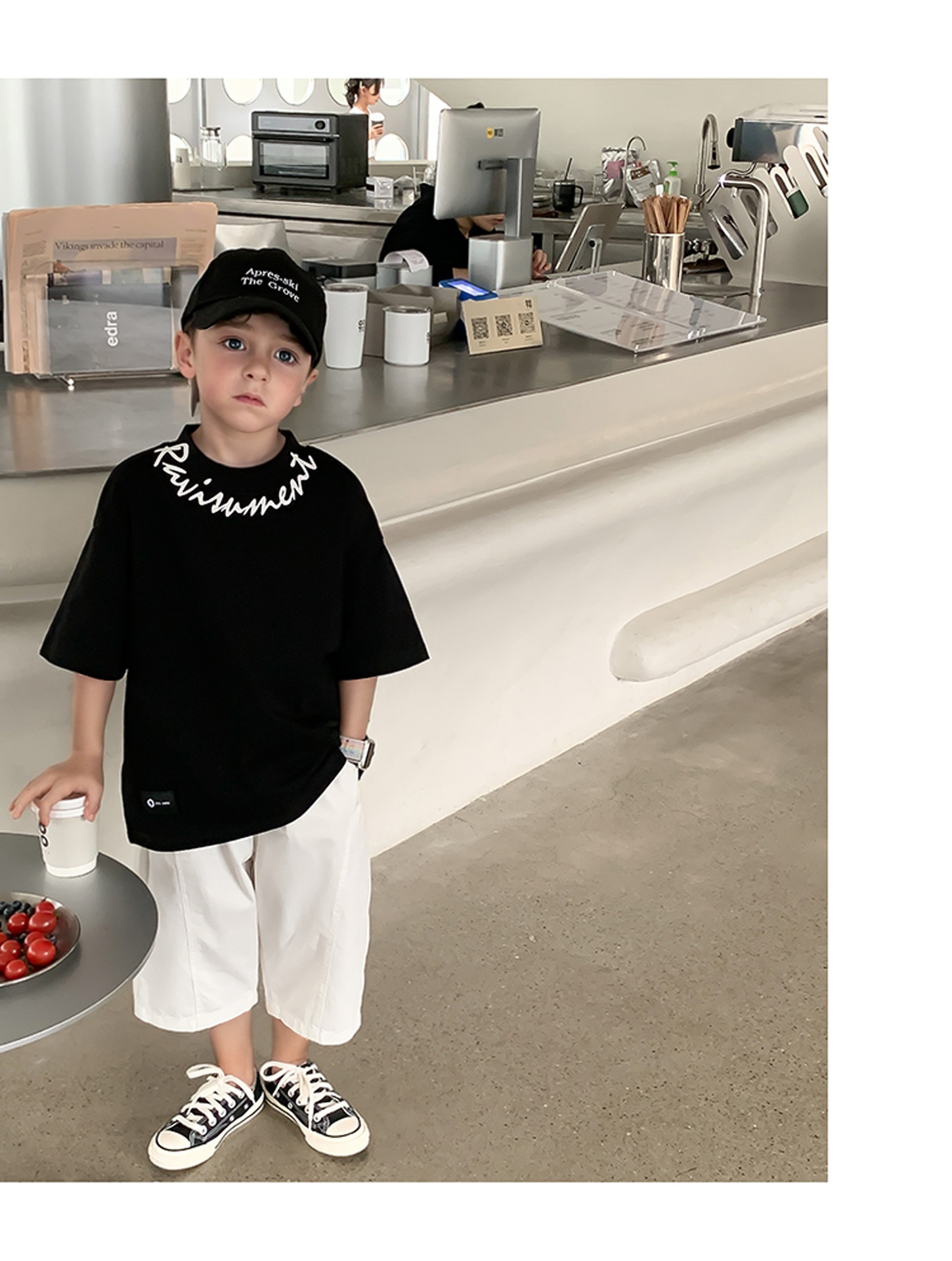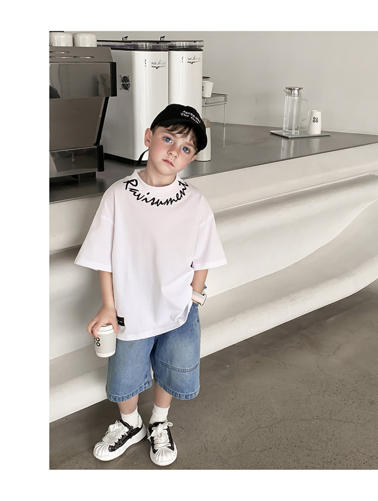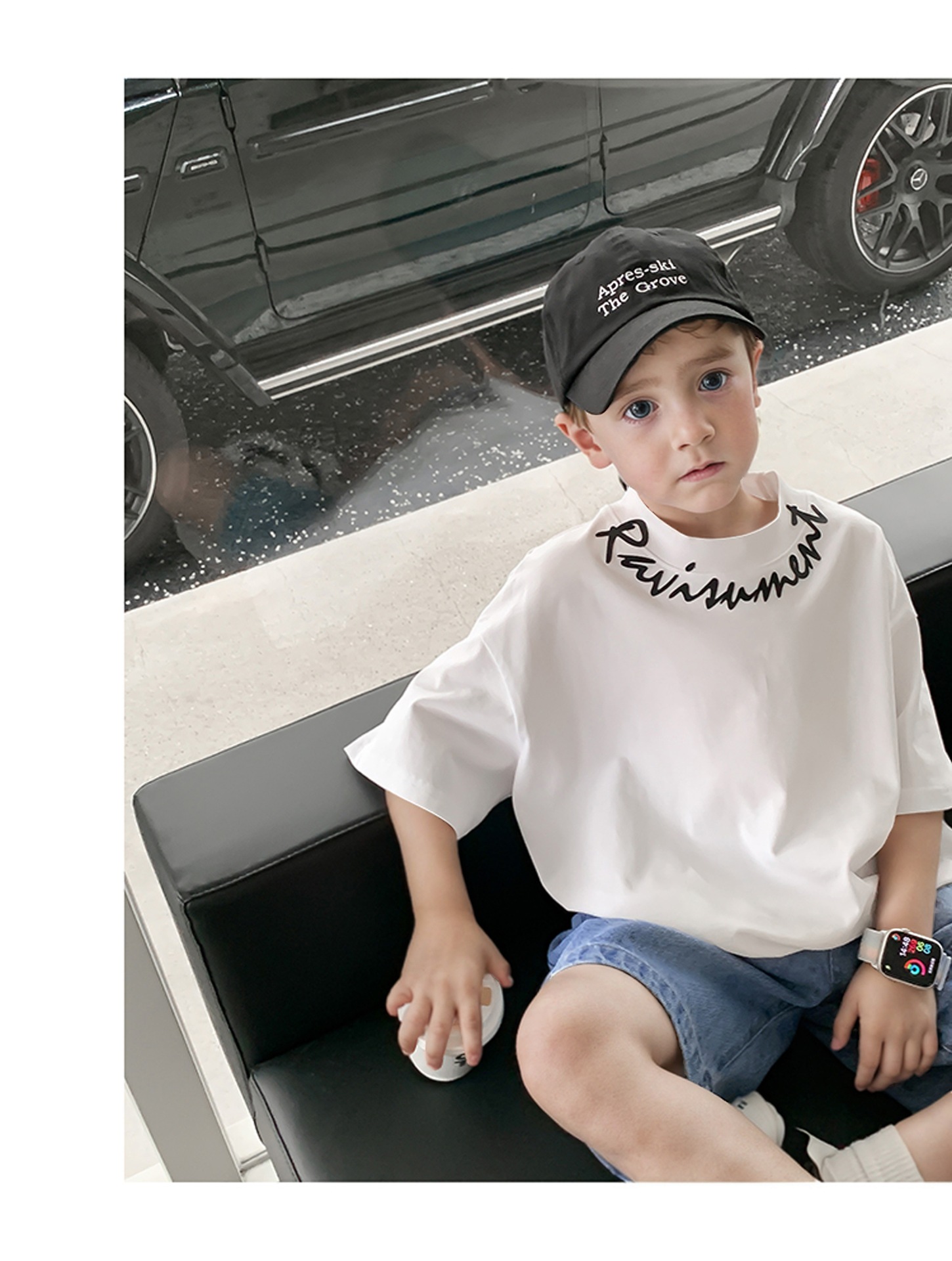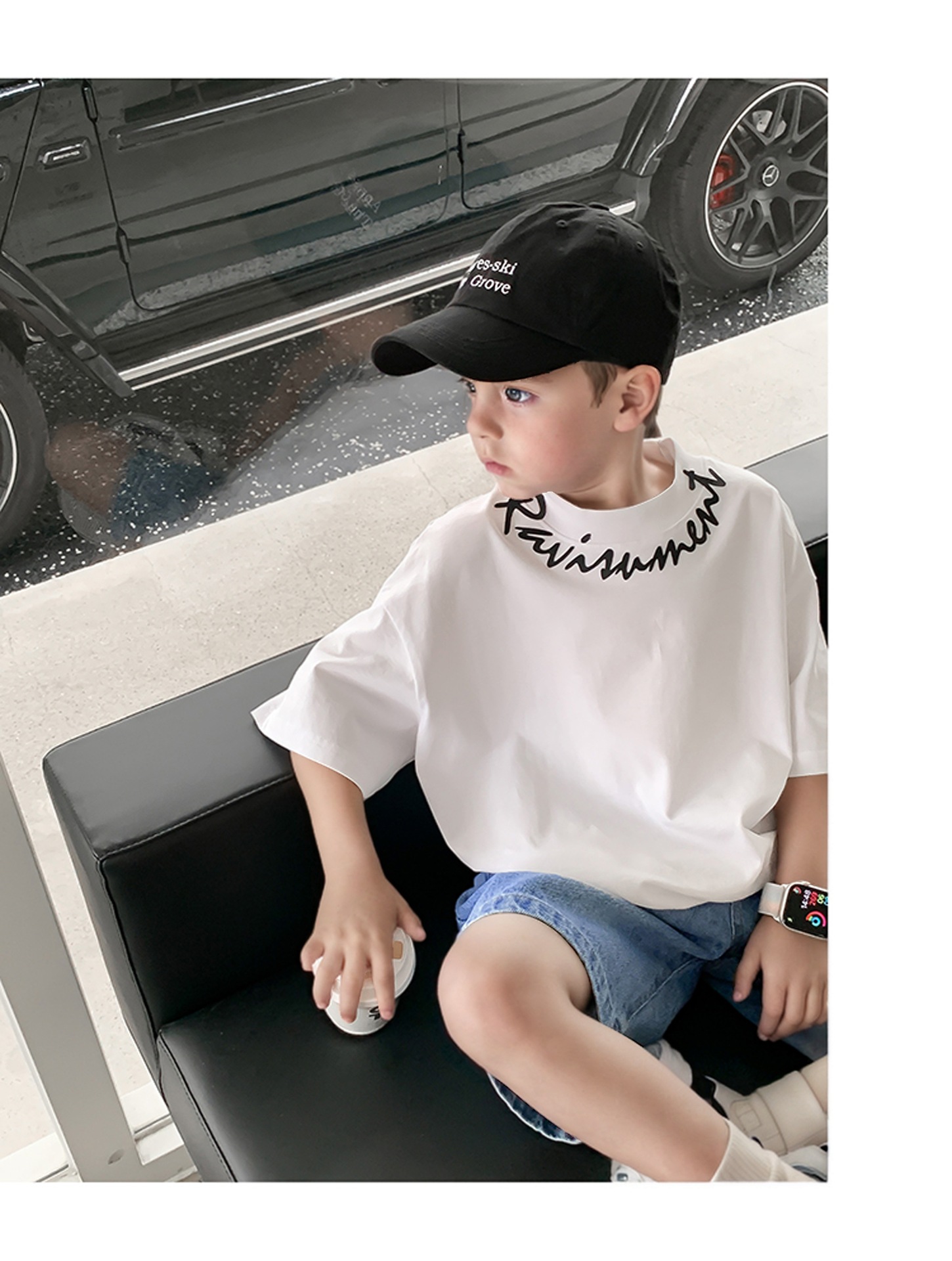 남자의 큰 소년의 둥근 목 반팔 티셔츠 시원하고 잘 생긴 유행 힙합 소년의 여름 순면 탑 스테레오 인쇄스토어 가기