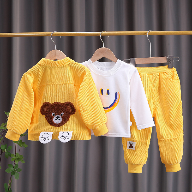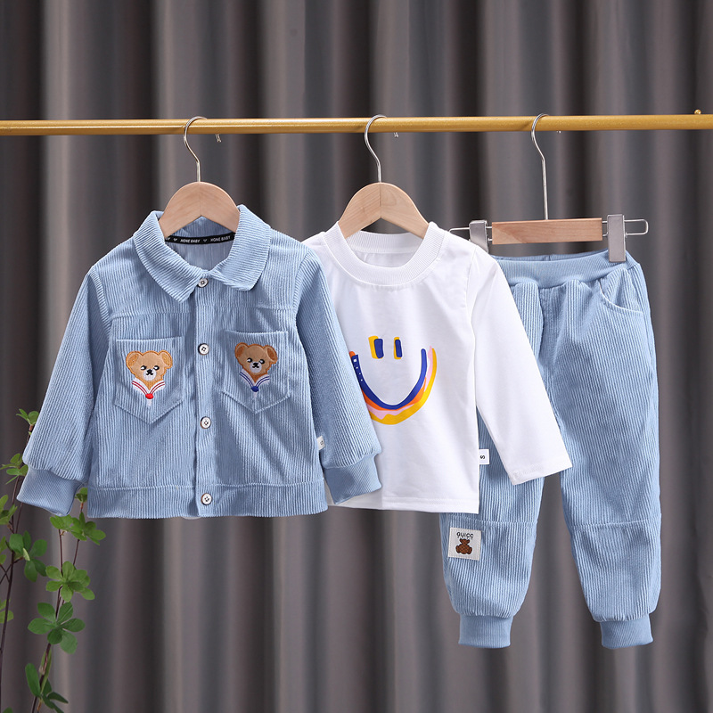 유행 소년 세트 봄과 가을 새로운 어린이 코듀로이 만화 탑 캐주얼 바지 한국식 3 종 세트스토어 가기