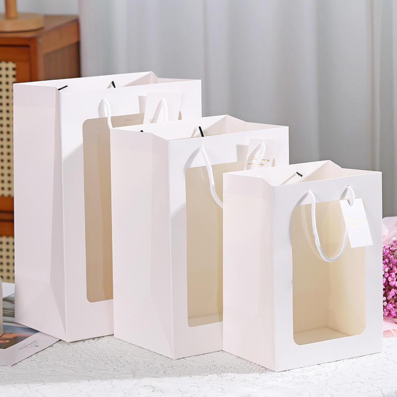 • 투명한 열린 창 휴대용 종이 봉투 (흰색); 흰색 판지; 중간 20*15*30cm