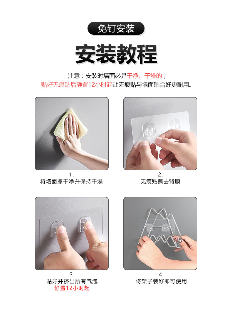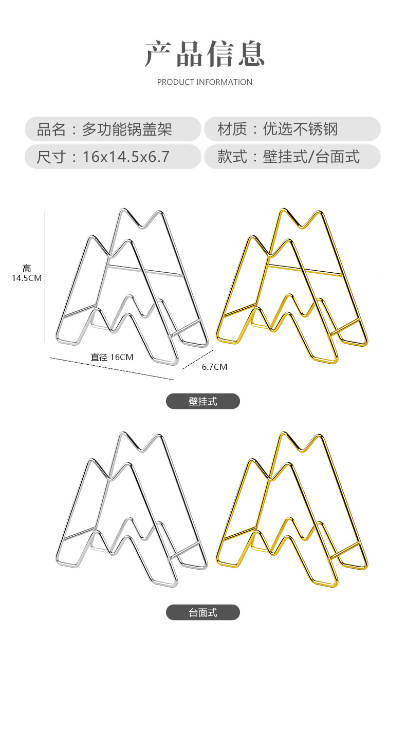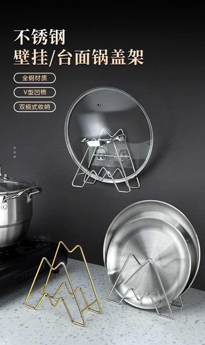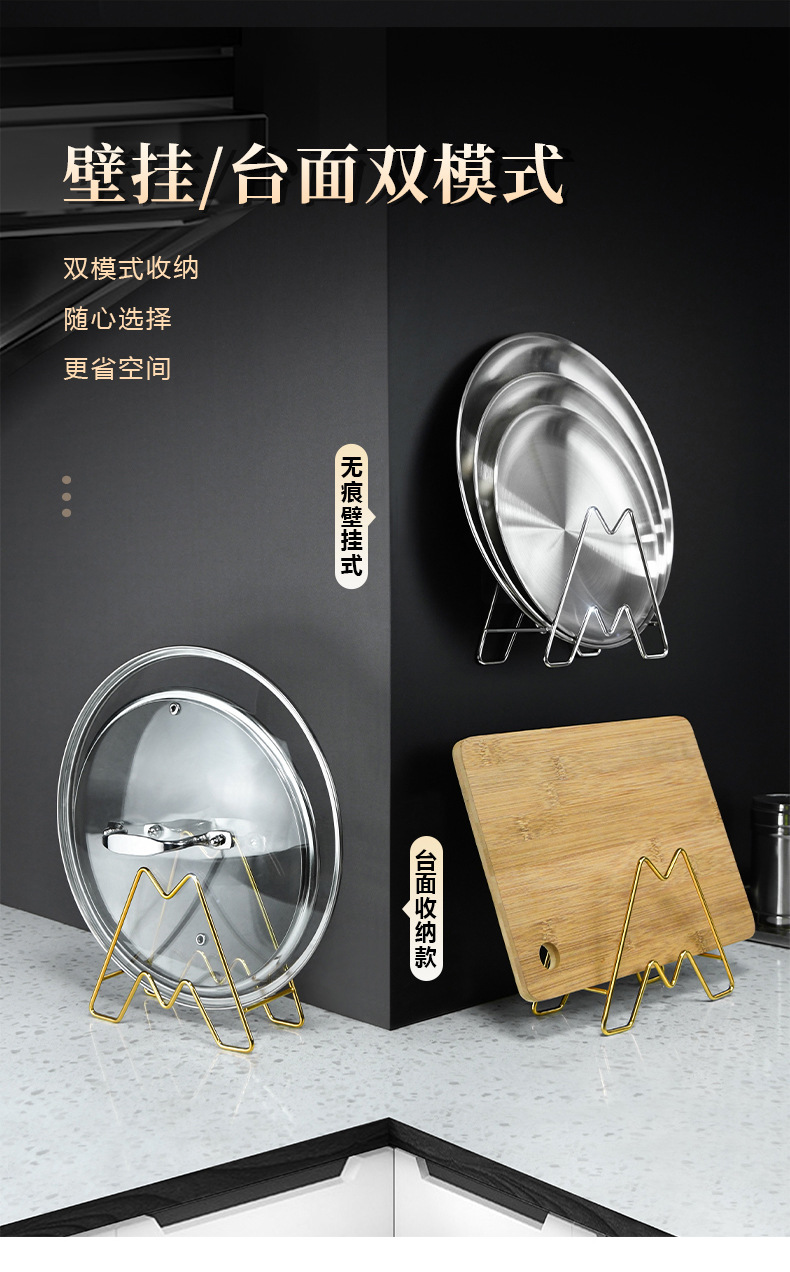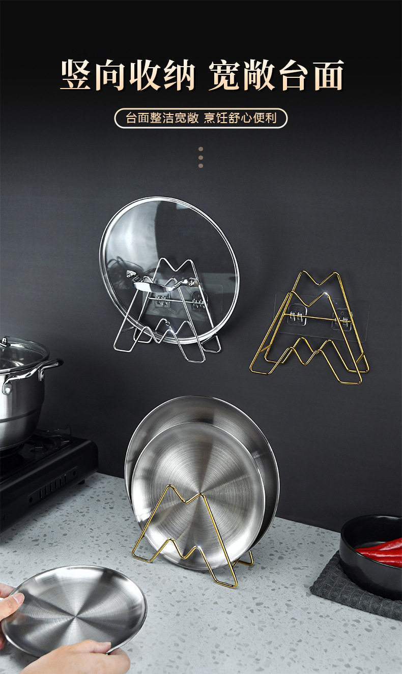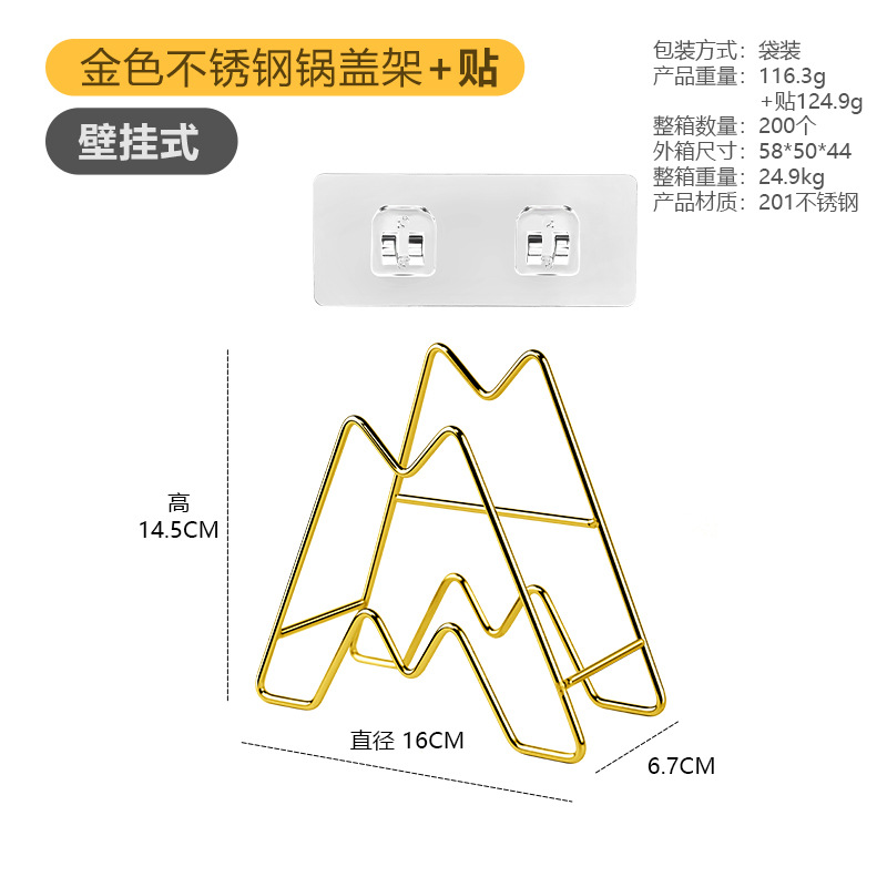 • [벽걸이] 냄비 커버 트레이 랙 + 이중 위치 스티커 (골드)