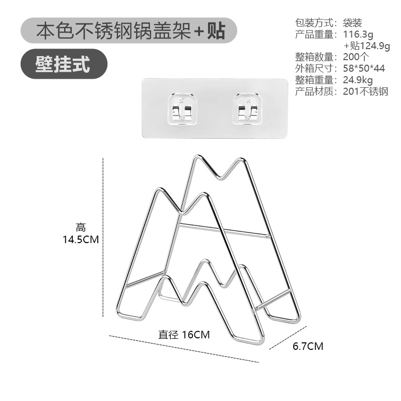 • [벽걸이] 냄비 커버 트레이 랙 + 이중 위치 스티커 (내츄럴 컬러)