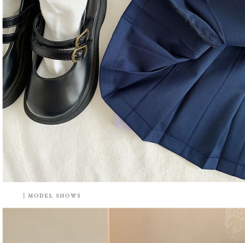 • 태국 여자 짧은 소매 + 네이비 치마 + 크로스 매듭 + 양말